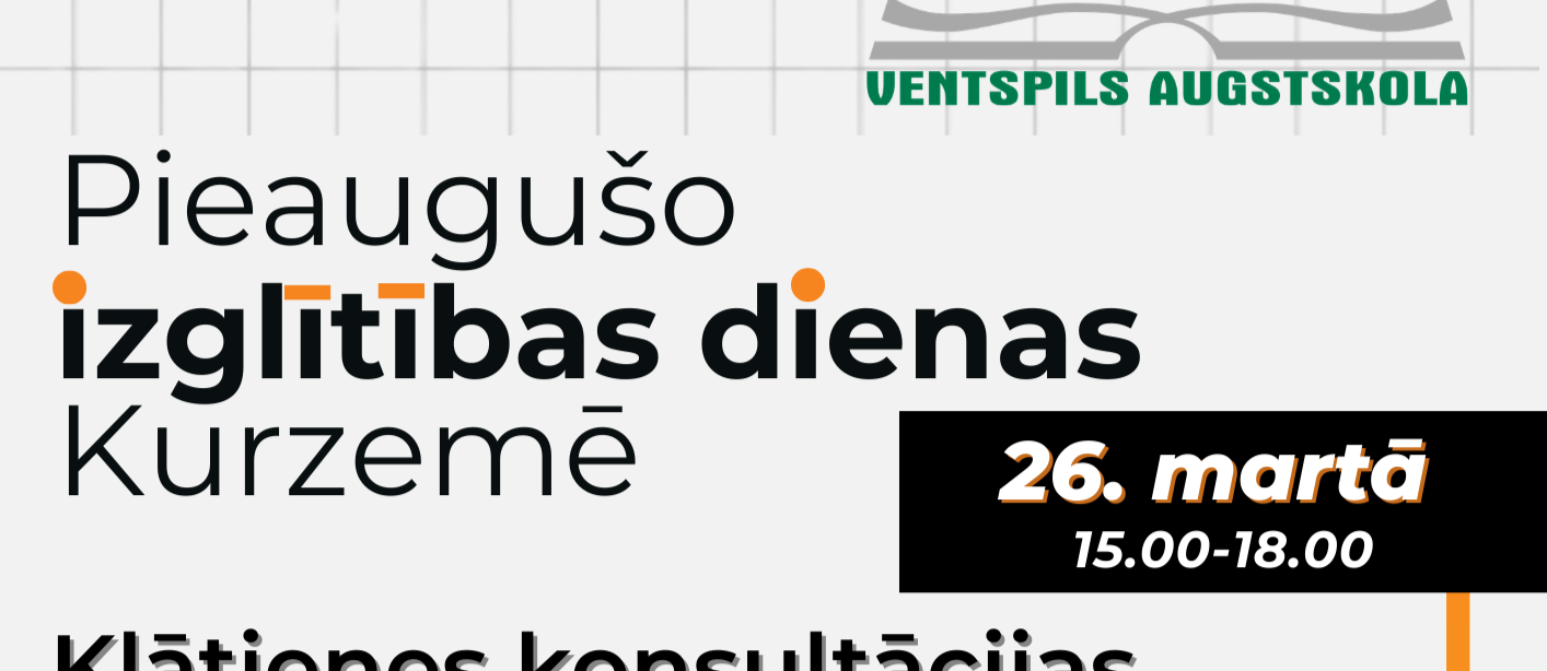 No 23. līdz 27. martam visā Kurzemē jau trešo gadu notiks plašs pieaugušo izglītības pasākums “Pieaugušo izglītības dienas Kurzemē 2026”, kura aktivitātēs iesaistīsies arī Ventspils Augstskolas Mūžizglītības centrs. Ventspils Augstskolas Mūžizglītības centra aicina interesentus uz klātienes konsultācijām profesionālajai izaugsmei, kas notiks 26. martā plkst. 15.00–18.00 Mūžizglītības centrā, Inženieru ielā 101, Ventspilī. Konsultācijas vadīs karjeras konsultante Līga Kovaļeva un Mūžizglītības centra vadītāja Līga Gabrāne. Tikšanās laikā dalībniekiem būs iespēja saņemt individuālus ieteikumus par karjeras attīstību, profesionālo prasmju pilnveidi un dažādām mācību iespējām. Pasākuma laikā varēs arī uzzināt vairāk par prasmju pārvaldības platformu Stars un tās piedāvātajām iespējām profesionālās izaugsmes veicināšanai. Interesentiem tā būs iespēja iegūt praktisku informāciju un ieteikumus, kas var palīdzēt turpmākajā karjeras attīstībā. “Pieaugušo izglītības dienas Kurzemē” sniedz iespēju ikvienam izmēģināt dažādas mācību formas un izvēlēties sev interesējošo jomu. Nav nepieciešams uzreiz uzsākt ilgstošas studijas – pietiek ar vienu semināru, konsultāciju vai darbnīcu, lai iegūtu jaunu pieredzi un pārliecību par savām spējām. Plašāka informācija par pasākumiem un pieteikšanos: ej.uz/pidk2026 Pasākumu “Pieaugušo izglītības dienas Kurzemē 2026” organizē Kurzemes plānošanas reģions sadarbībā ar Kurzemes pašvaldībām, izglītības iestādēm un partneriem, tostarp Ventspils Augstskolu. Tiekamies martā “Pieaugušo izglītības dienas Kurzemē 2026” pasākumos! Vairāk informācijas: mic@venta.lv , tālr. 63629650.