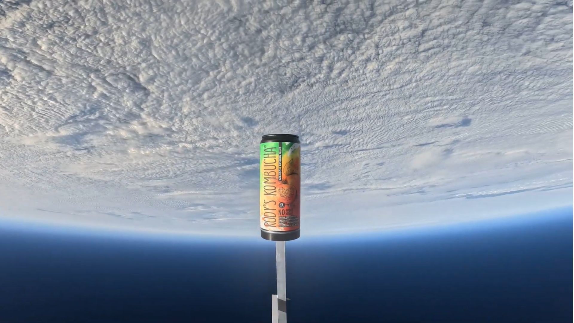 Ventspils Augstskolas elektronikas inženierijas studenti izstrādāja zondi, kura nogādāja “Rudy’s Kombucha” bundžiņu kosmosā, sasniedzot iespaidīgu 28 690 metru jeb teju 30 kilometru augstumu virs Zemes. Cenšoties atrast zondi, studenti saskarās ar lieliem GPS signāla traucējumiem Kurzemē, tādēļ aicināja palīgā radioamatierus un kopīgiem spēkiem zonde tika atrasta Dobeles pusē. Kosmosa misijas zonde bija aprīkota ar GoPro kameru, kas fiksējusi gan tās pacelšanās brīdi, gan gleznaino lidojumu. Pēc zondes balona kontrolētās eksplozijas, teju 30 kilometru augstumā atvērās izpletnis, kas skārdeni veiksmīgi nogādāja atpakaļ uz zemes. Zonde startēja no Ventspils lidlauka un, nolidojusi aptuveni 140 kilometrus, nolaidās Dobeles pusē. Ventspils Augstskolas studiju programmas Elektronikas inženierija direktors Jānis Šate stāsta: „Uzņēmums zināja, ka mūsu studenti izstrādā zondes, un tam bija ideja dzērienu pielikt klāt un palaist kosmosā. Pareizāk gan būtu teikt, ka tā palaista stratosfērā. Augustā to pārrunājām, un dažu mēnešu laikā elektronikas inženierijas studenti zondi izveidoja. 3. kursā tas ir grupas projekts. Jauki, ka tam ir papildu pienesums. Lai zondi palaistu, vissarežģītāk ir izveidot elektronisko sistēmu, ko pieliek pie izpletņa un hēlija balona. Tas paceļas aptuveni 30 kilometru augstumā, tur spiediens samazinās, balons pārsprāgst, un zonde piezemējas. Palaist viegli, bet sarežģīti ir zondi izsekot un pēc tam atrast. Jābūt GPS navigācijai, un visu laiku no tās jāsaņem signāls, kur zonde atrodas. Studentu uzdevums ir izveidot tādu elektronikas sistēmu, kas darbojas arī stratosfērā –40 grādu aukstumā. Ar Civilās aviācijas aģentūru saskaņojām laiku, jo tiek traucēta gaisa satiksme, vienojāmies arī ar Ventspils lidostu. Zondi beigās atradām Dobeles pusē, tomēr neplānoti sarežģījumi bija – ņemot vērā situāciju pasaulē, no Kēnigsbergas jeb Kaļiņingradas (Krievijā) GPS sakari regulāri tiek traucēti. Arī šoreiz trāpījām tādā dienā, kad Kurzemē un Baltijas jūrā traucējumi bija īpaši. Tas nozīmē, ka tad, kad zonde pacēlās augstāk par desmit kilometriem, mums rādīja, ka tā atrodas ne vairs virs Kuldīgas, bet Kaļiņingradā. No turienes tika sūtīti tādi signāli, kas GPS satelītu signālus vilto, lai tos objektus, kas pārvietojas, maldinātu.”