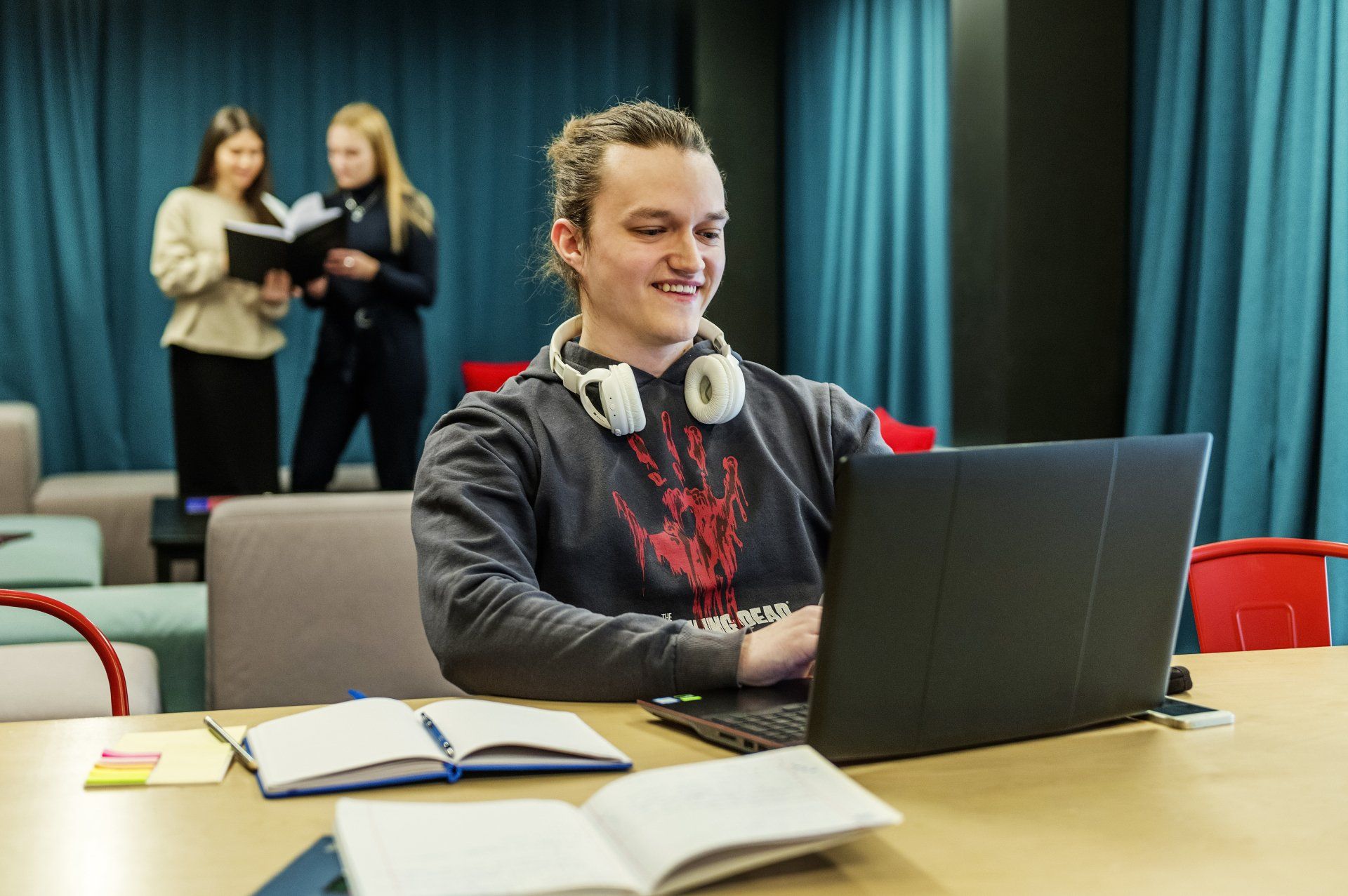 Telpā atrodas bilijarda galds, futbola un tenisa galds, dīvāni, maza skatuvīte prezentācijām un liels galds pie kura var viegli mācīties, spēlēt spēles vai iedzert tēju, jo krūzītes un tējkanna arī ir pieejamas. Tikai pēc sevis lūgums savākt vienmēr, lai visiem būtu prieks par sakopto telpu!