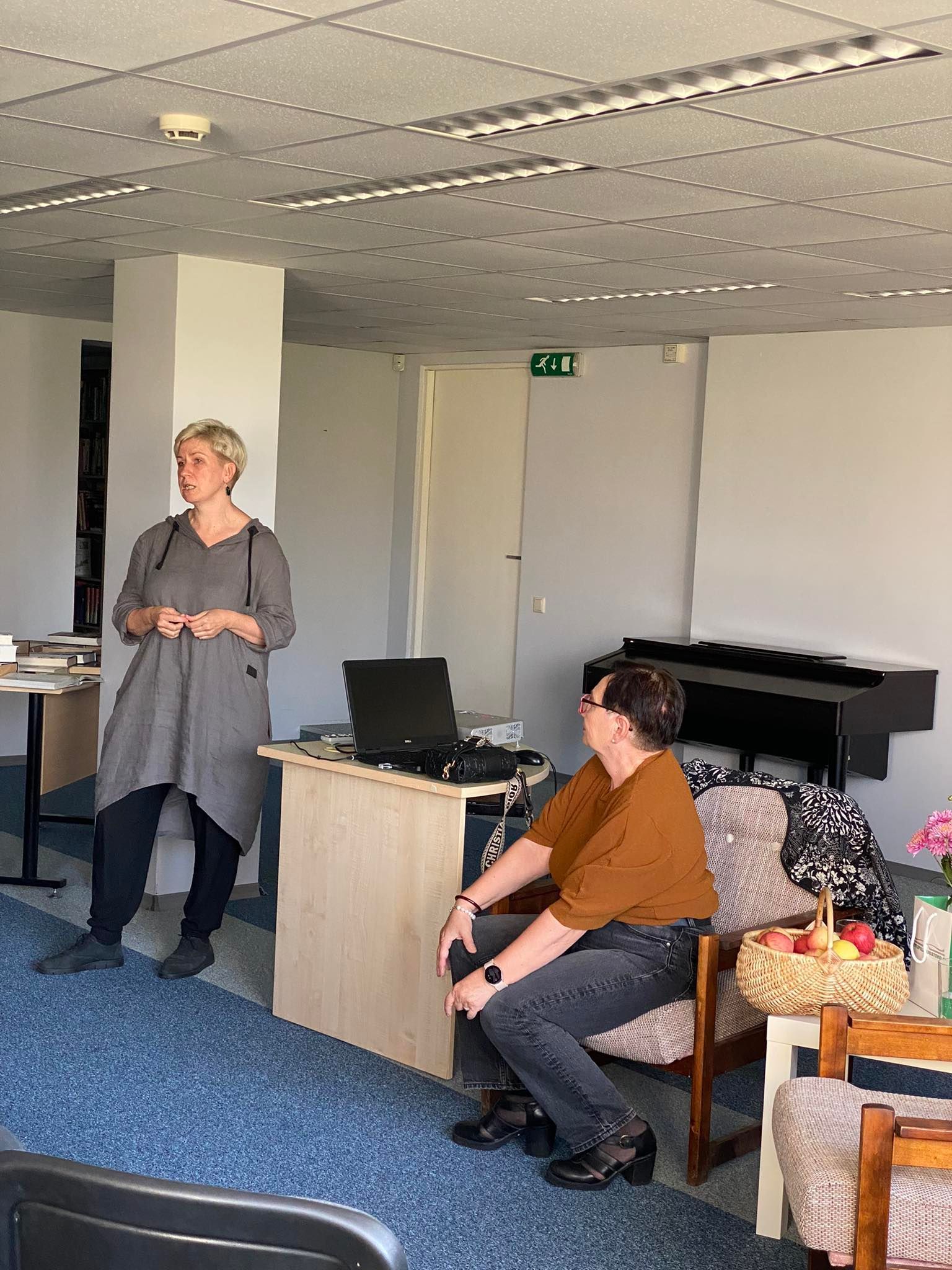 3. decembrī Ventspils Augstskolas bibliotēkā aizvadīta tikšanās ar izcilo tulkotāju Daci Meieri. Tikšanos un sarunu vadīja Astra Skrābane. Tulkošanas studiju fakultātes studentiem un docētājiem, kā arī citiem interesentiem bija iespēja uzzināt vairāk par Daces Meieres tulkoto Irenes Valjeho grāmatu “Papiruss. Pasaules vēsture grāmatās” un par tulkošanu kopumā. Astra Skrābane vadīja diskusiju, izmantojot īpašus atmiņas mezglus, kuri simbolizēja kādu sarunas tēmu, kā arī sasaistīja seno vēsturi ar mūsdienām. Irenes Valjeho “Papiruss” ir par pasaules vēstures saikni ar mūsdienām, par mūsu senču domu gājienu un uzskatu klātbūtni arī 21. gadsimta pasaulē. Tā mainās un attīstās, bet pagātne tomēr ietekmē mūs vairāk nekā varētu šķist. “Grāmata ir atmiņas un iztēles paplašinājums,” Astra Skrābane citē rakstnieku Borhesu. Sarunas laikā Dace Meiere sniedza vērtīgas atziņas un padomus, piemēram, katrā valodā izpratne par pasauli ir citāda, jebkurai tulkotai grāmatai bez acīmredzamā autora ir arī otrs autors – tulkotājs. Dace Meiere arī aicināja mācīties vairāk valodu, – kaut mazliet, jo zināšanas vienmēr noderēs. Tulkotāja slavēja gan grāmatas autores Irenes Valjeho īpatnējo izbrīnu par pasauli, gan izcilo redaktoru Arturu Hansonu, kurš palīdzēja pareizi pārtulkot grāmatā iekļautos pārstāstītos citātus no citām valodām. “Galvenais darbarīks ir latviešu valoda, un tā ir jākopj un jāpilnveido,” uzsvēra tulkotāja, aicinot studentus ne tikai tulkot, bet arī lasīt grāmatas labā un bagātā latviešu valodā. Dace Meiere norādīja, ka Ventspils ir ideāla vieta tulkošanai un, ja tulkošanas laikā gadās (un tā notiek nereti) piedzīvot grūtus brīžus, ir jādodas pastaigā. Foto: Ventspils bibliotēka Informāciju sagatavoja 3TVT studente Sanija Zundovska un 2TVT studente Sindija Plotniece.
