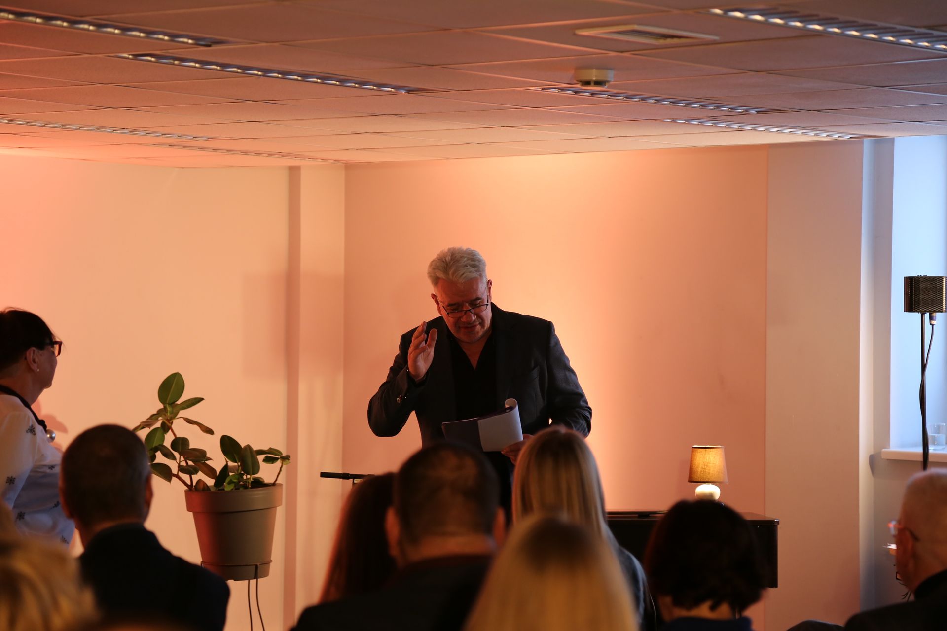 Šā gada 10. martā Ventspils Augstskolas (VeA) bibliotēkā par godu asociētās profesores Astras Skrābanes jubilejai norisinājās benefice “Es un mani liecinieki”. Pasākums pulcēja VeA saimes un domes pārstāvjus un citus viesus, kā arī tajā ar dzejas lasījumiem piedalijās Mārtiņš Vilsons un Roze Marija Fransuā.