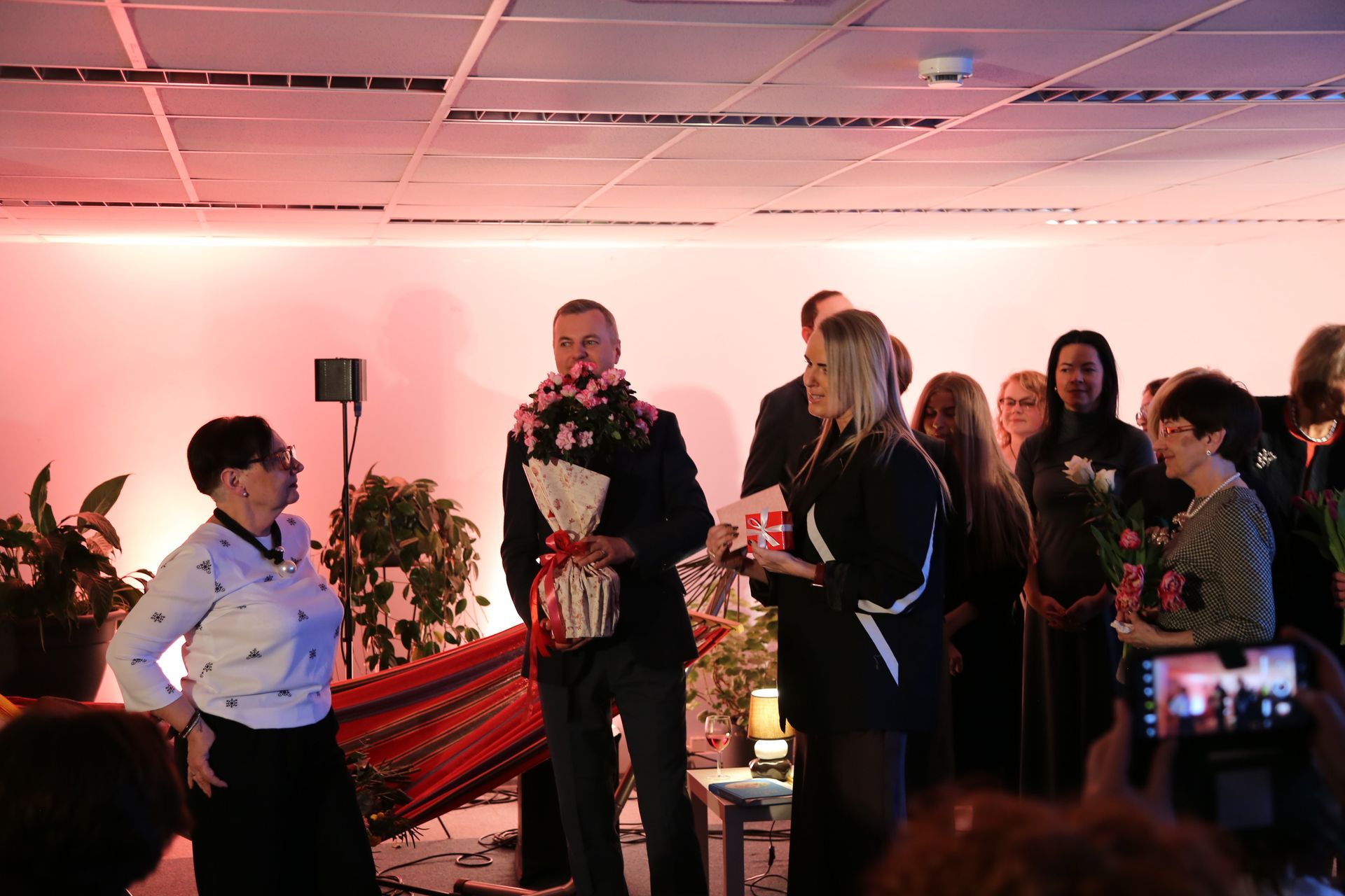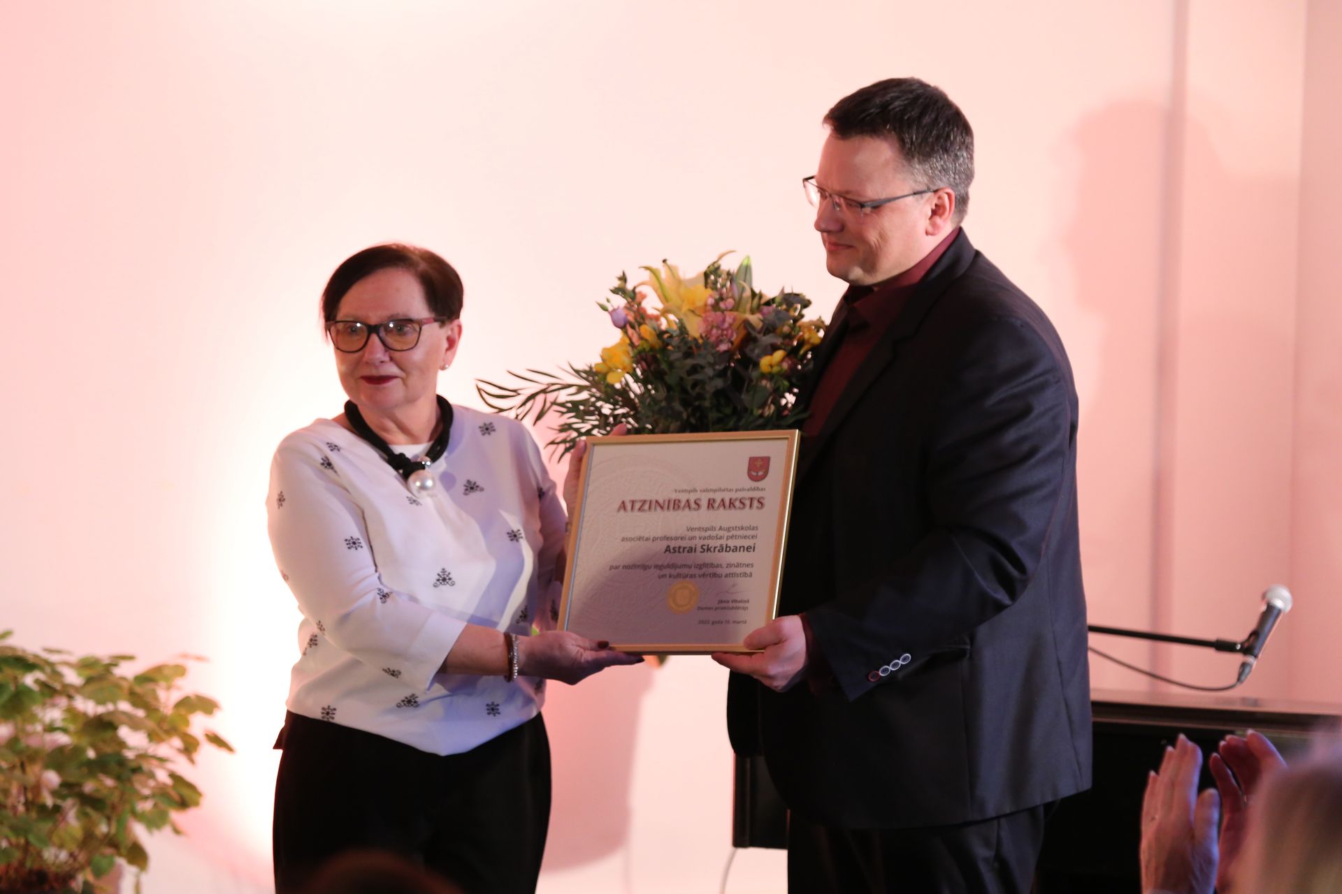Astra Skrābane VeA strādā jau no tās dibināšanas pirmsākumiem un ir sniegusi lielu ieguldījumu Tulkošanas studiju fakultātes attīstībā, kā arī šobrīd ir uzņēmusies bakalaura līmeņa studiju programmas “Tulkošana un valodu tehnoloģija” programmas direktores pienākumus. Pasākuma laikā tika teikti laba vēlējumi un sveicieni jubilejā, kā arī Ventspils valstspilsētas domes pārstāvis pasniedza Astrai Skrābanei atzinības rakstu par nozīmīgu ieguldījumu izglītības, zinātnes un kultūras vērtību attīstībā.