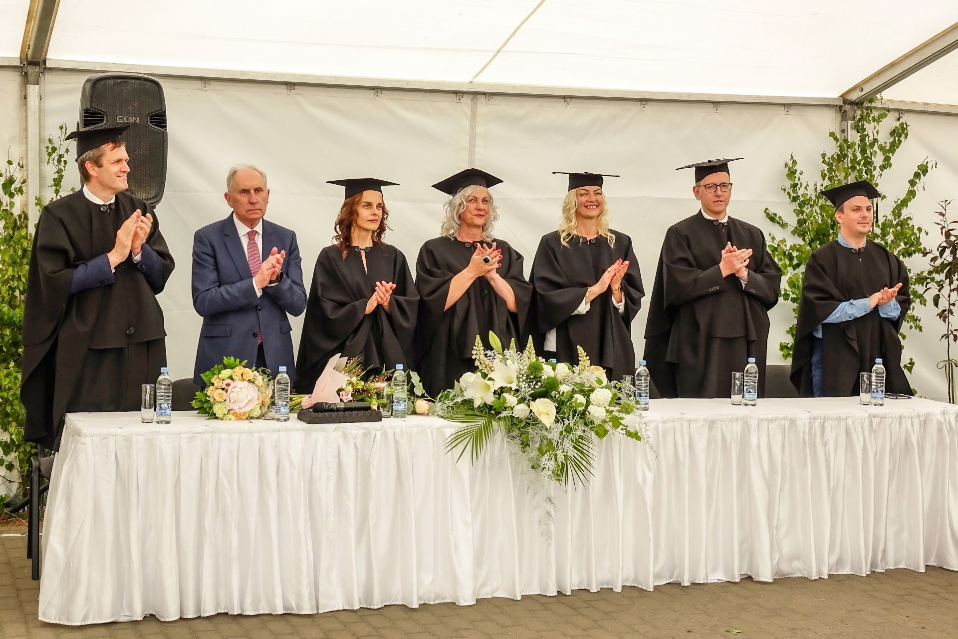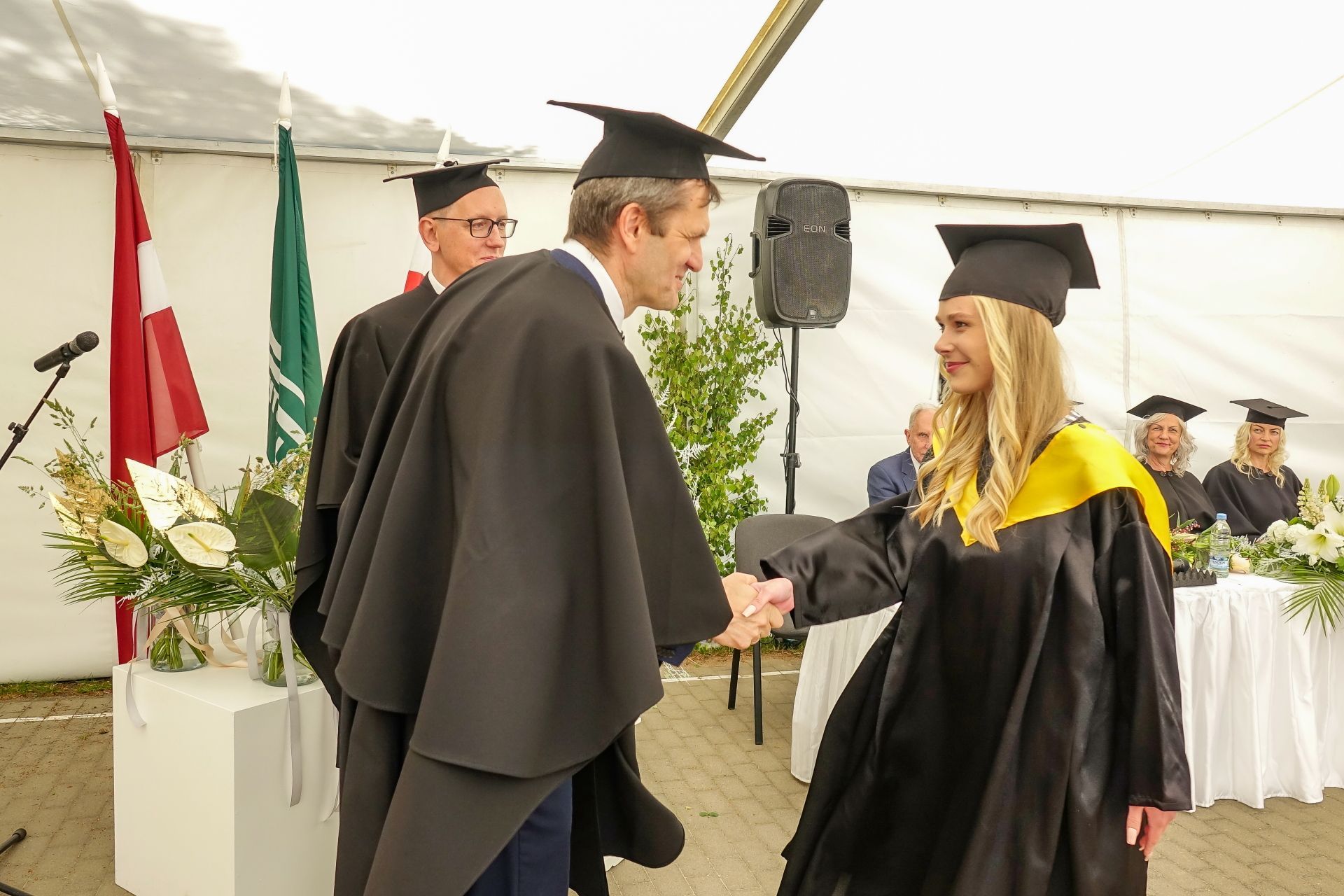 Ventspils Augstskolā (VeA) vasaras sākums noritēja īpaši rosīgi, jo norisinājās bakalaura un maģistra darbu aizstāvēšanas. Savus noslēguma darbus sekmīgi aizstāvēja 129 absolventi, kuri 20. jūnijā saņēma diplomus svinīgajā izlaiduma ceremonijā Ventspils Augstskolas dārzā. Pasākumu vadīja Juris Jope, bet par muzikālo noskaņu parūpējās mūziķis, dziesmu autors un grupas The Sound Poets solists Jānis Aišpurs.