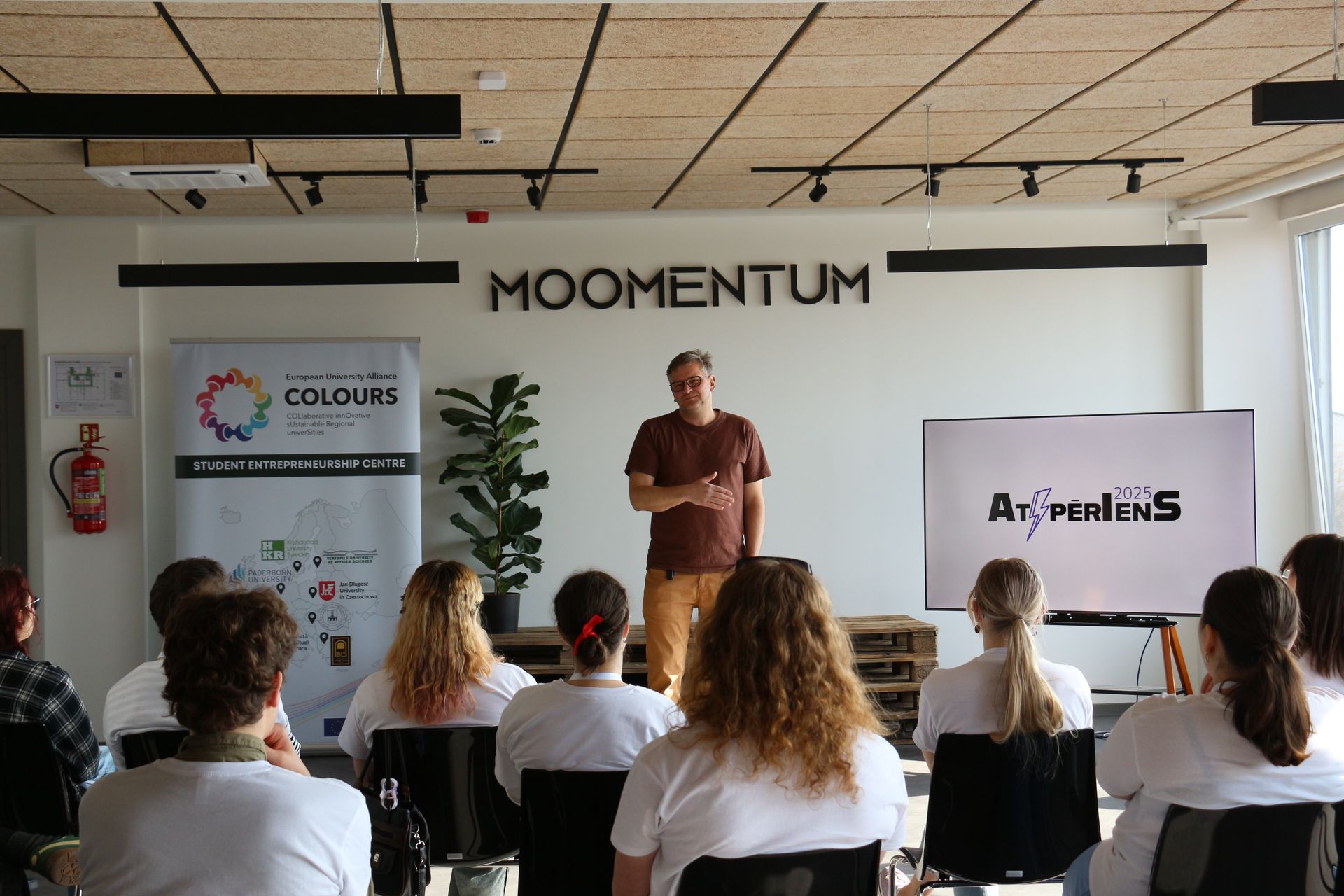 Studentu padome koprades telpās Moomentum noorganizēja kārtējo pašizaugsmes un līderības semināru “Atspēriens”, kur dalībniekus izgītoja dažādu industriju pārstāvji, stāstot par tēmām, kā darba tirgus, publiskā runa un stresa menedžments.