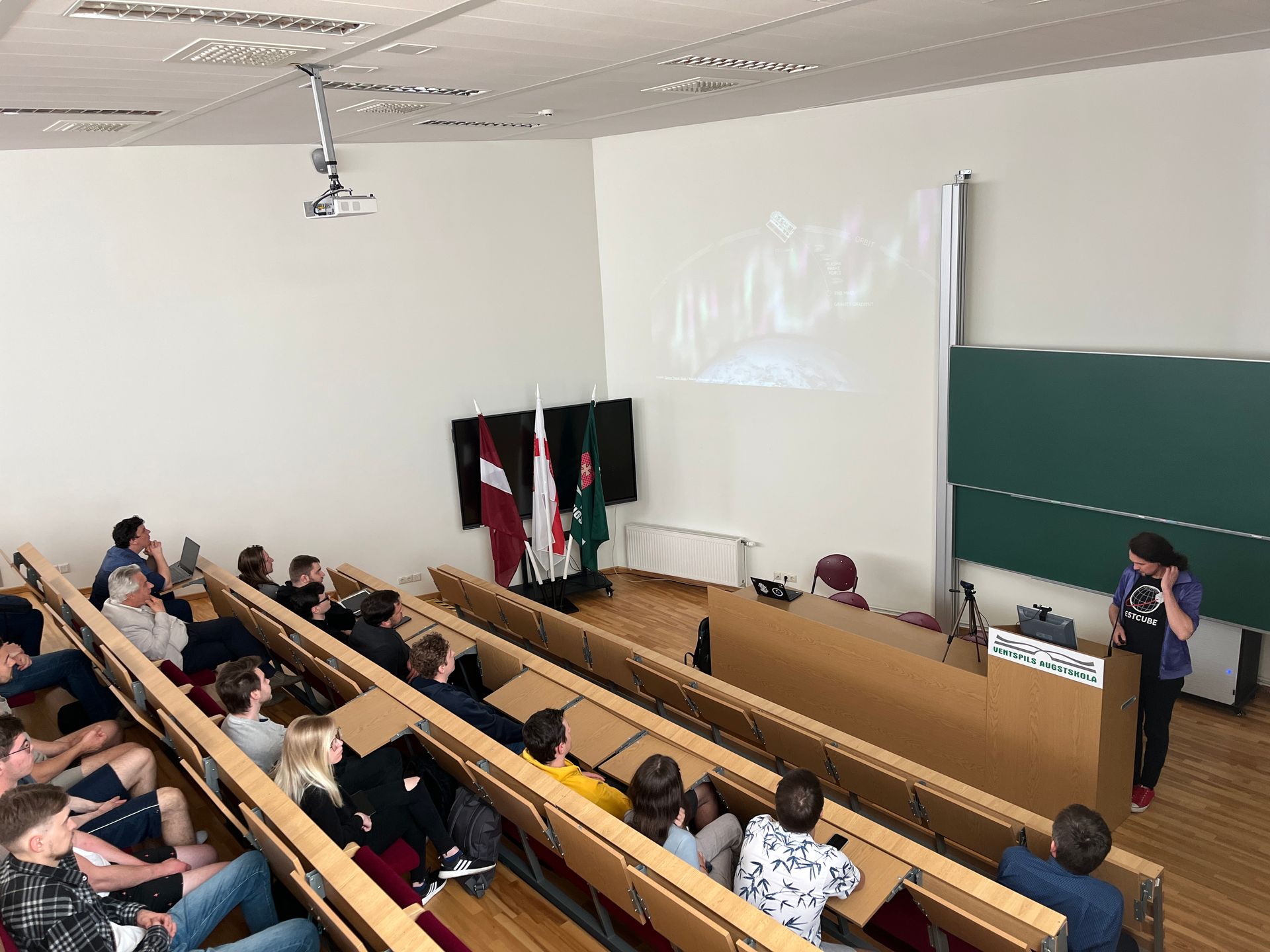 25. maijā Ventspils Augstskolā (VeA) ar vieslekciju par tēmu “Elektriskā bura un nano kosmosa kuģi: nākotnes izaicinājumi jaunu kosmisko dzinējsistēmu demonstrācijā” uzstājās ESTCube programmas vadītājs un VeA Informācijas tehnoloģiju fakultātes absolvents Andris Slavinskis. Lekcijas laikā viņš dalijās ne tikai ar savu profesionālo pieredzi, bet arī ar stāstiem no studiju laika VeA.
