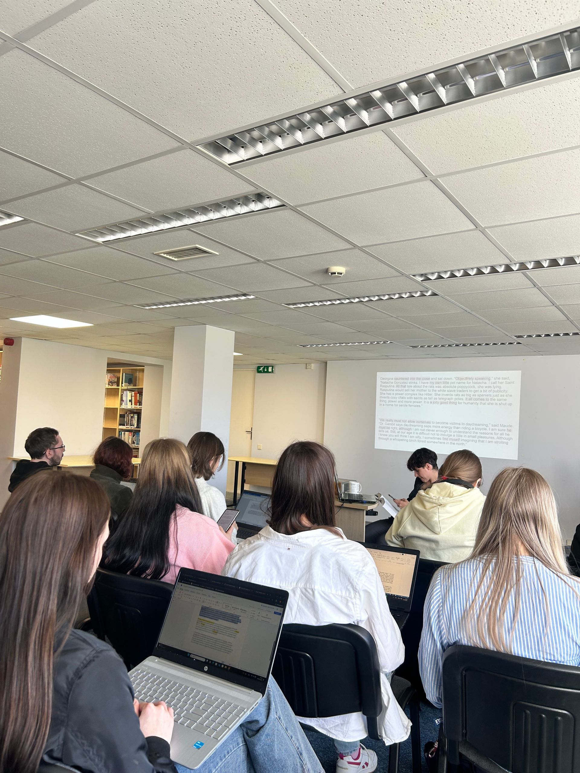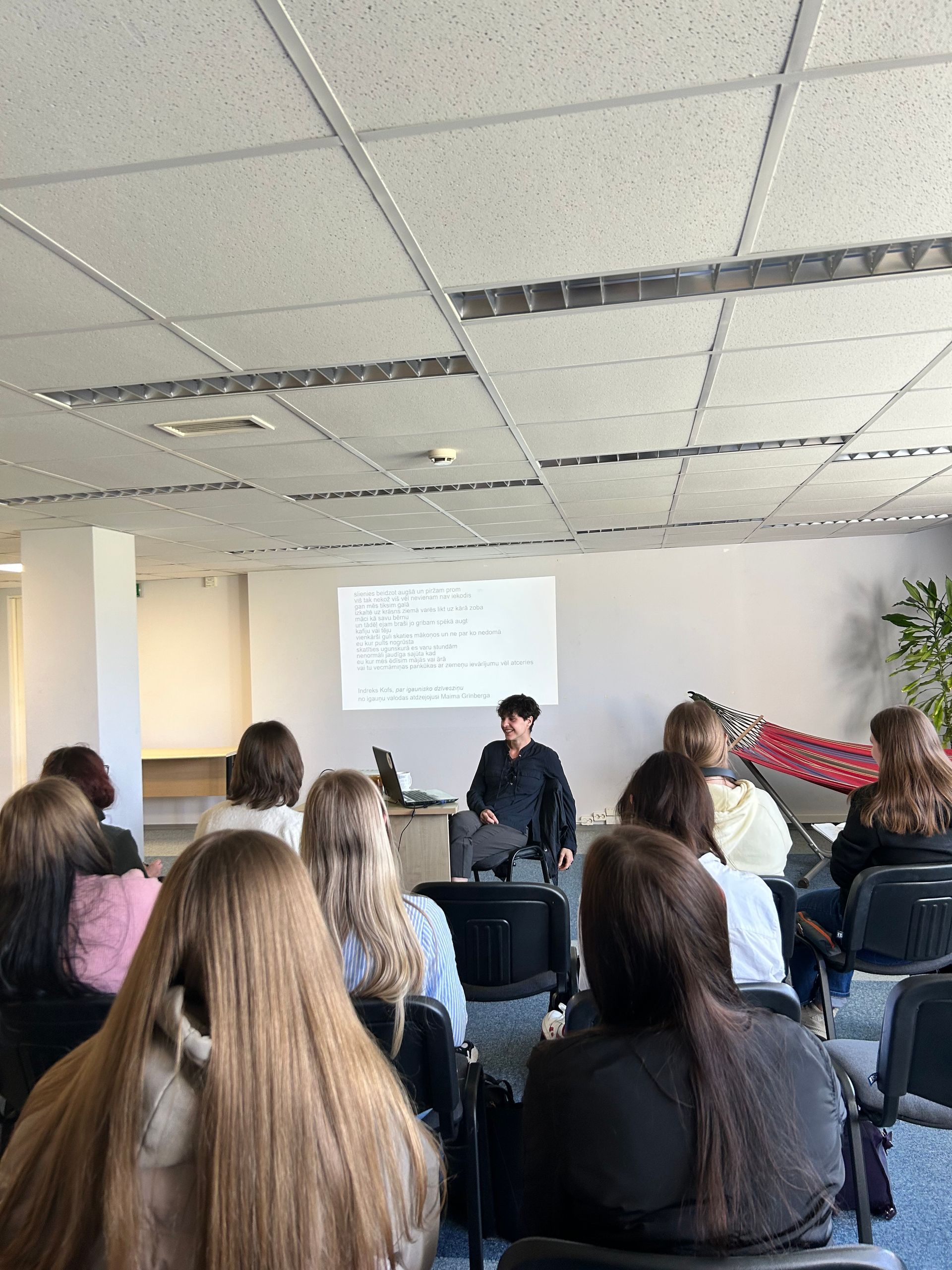 Studiju programmas “Tulkošana un valodu tehnoloģija” 2. un 3. kursa studenti 7. maijā piedalījās daiļliteratūras tulkošanas darbnīcā VeA bibliotēkā. Pasākumu vadīja dzejniece, tulkotāja un redaktore Linda Mence, un tajā piedalījās studenti, kas īpaši interesējas par daiļliteratūru un tās tulkošanu.