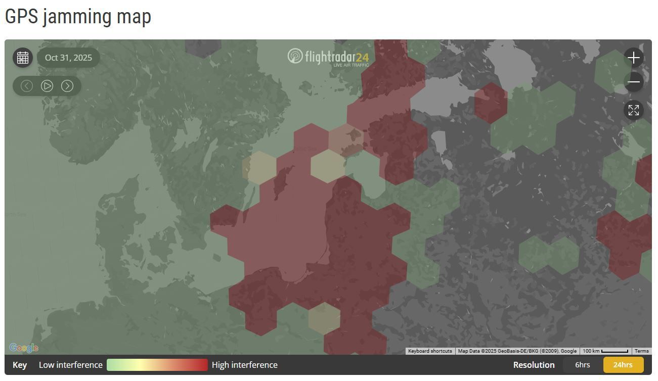 Avots: https://www.flightradar24.com, “GPS jamming map”