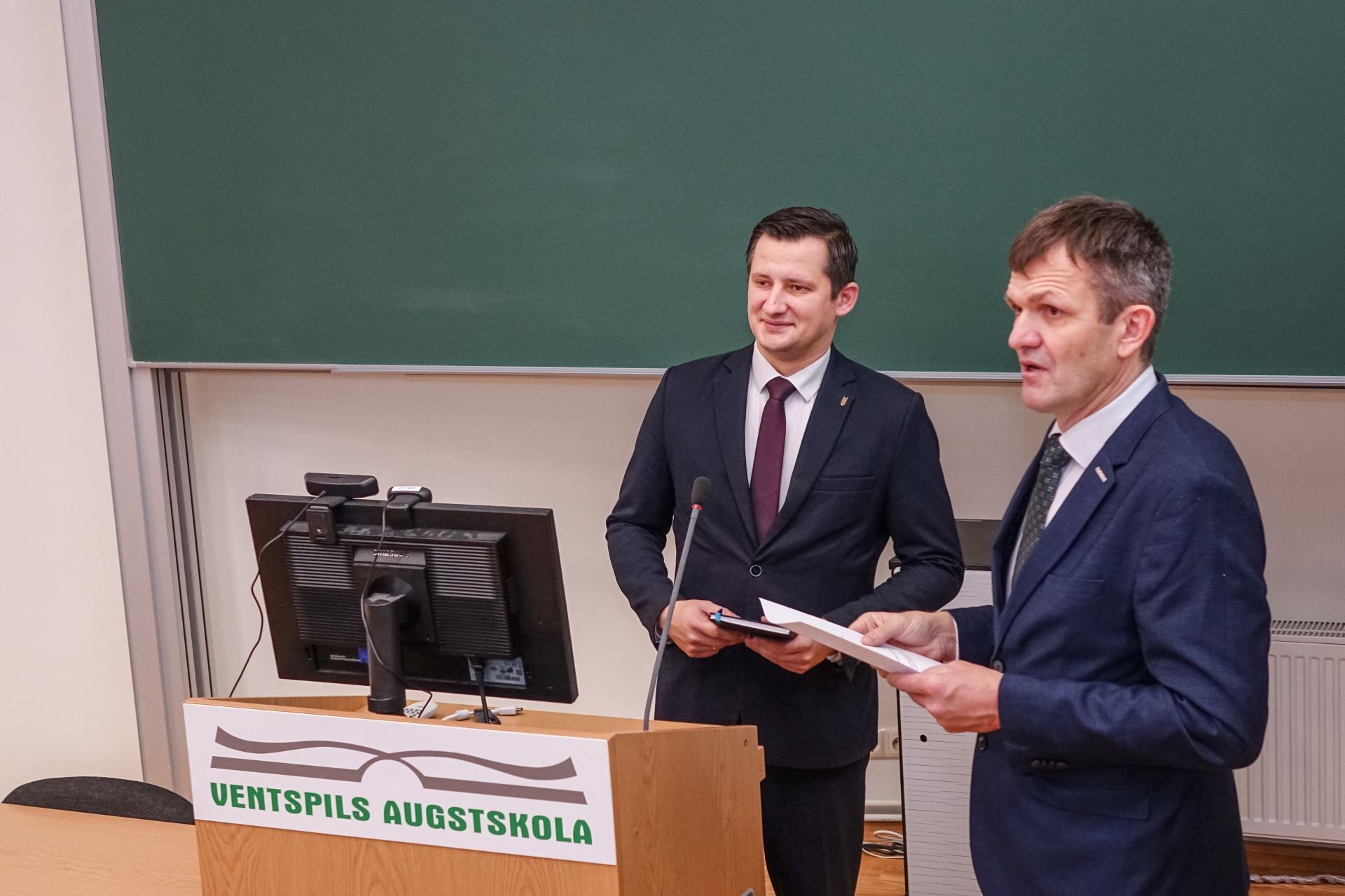 No 11. novembra līdz 15. novembrim Ventspils Augstskolas Elektronikas inženierijas 3. kursa studenti Rūdolfs Pakalns, Marta Dzelme un 1. kursa students Kristofers Jēkabs Rozevskis piedalījās universitāšu alianses “COLOURS” organizētajā hakatonā “Reinforcement Farming”, kas norisinājās Osijekas Universitātē Horvātijā, Elektrisko inženierzinātņu, datorzinātņu un informācijas tehnoloģiju fakultātē ( Faculty of Electrical Engineering, Computer Science and Information Technology Osijek , FERIT). Hakatona galvenais uzdevums bija, izmantojot “stimulētās mācīšanās” metodes, apmācīt mākslīgā intelekta aģentus kā spēles varoņus. Pēdējā dienā komandu izstrādātie MI varoņi savstarpēji sacentās pret citu komandu aģentiem. Tā kā Elektronikas inženierijas studiju programmā netiek iekļauti kursi, kuros padziļināti apgūst mākslīgā intelekta apmācīšanu, šis hakatons bija lieliska iespēja iegūt papildus zināšanas, kuras ir noderīgas strauji attīstošajā mākslīgā intelekta nozarē un palīdz izprast to, kā ikdienas darbu atvieglošanai bieži izmantotais MI darbojas. Rūdolfs atzīst, ka pirms dalības projektā viņam nebija īsti skaidra priekšstata par to, kā notiek mākslīgā intelekta apmācīšana, par to bija tikai dzirdēts, taču hakatona laikā, aktīvi darbojoties komandā un mēģinot risināt reālus uzdevumus, viņš ieguva pieredzi, kā MI tiek apmācīts, kā tas reaģē uz datiem un kā ar to strādāt praktiskās situācijās. Šī pieredze viņam devusi daudz vērtīgāku izpratni ar MI un, viņaprāt, ir ļoti noderīga prasme mūsdienu un nākotnes tehnoloģiju nozarē. Projekta ietvaros studenti apmeklēja arī pasākumu “ CoLab – Advanced Technologies for Smart Farming ” un Field Study , kas ietvēra ekskursiju lopkopības saimniecībā, kura aprīkota ar vairākām modernām robotikas iekārtām. Ferma aprīkota ar uzņēmuma LELY ražotu robotu, kurš pats sagatavo un nogādā barību līdz attiecīgajām govīm. Govju monitorēšanu veic viedās apkakles, kas nosaka govs ID numuru, priekšlaicīgi brīdina par veselības problēmām un slaukšanas statisktiku. Arī govju slaukšana ir pilnībā automatizēta ar struktūru, kas veic govju slaukšanu un aprūpi. Papildus šis pasākums nodrošināja izglītojošas lekcijas par jau eksistējošām robotikas un māklīgā intelekta sistēmām, kuras pielieto lauksaimniecības uzlabošanai, kā arī risinājumiem, pie kuriem pašlaik tiek strādāts. “Papildus pašam hakatonam bija ļoti interesanti, aprunāties ar vietējiem studentiem un uzzināt par viņu studiju programmām un to, kā viņi apgūst STEM zināšans un prasmes. Vietējie studenti bija ļoti pretīmnākoši un aizrautīgi iepazīstināja arī ar horvātu tradīcijām un vēsturi, sniedzot šim projektam arī kulturālu vērtību,” saka Marta. Kristofers Jēkabs Rozevskis uzsver, ka dalība hakatonā sniegusi būtisku pienesumu izpratnei par mākslīgā intelekta darbības principiem un praktisko pielietojumu. “Zināšanas šajā jomā ir ļoti būtiskas, lai izprastu, kā tiek, vismaz daļēji, radīts mākslīgais intelekts, ar kuru darbojamies ikdienā. Kaut arī iepriekš biju saskāries ar MI izstrādi un teorētiskajiem principiem, šajā projektā man kļuva daudz skaidrāki MI apmācības soļi, principi un tas, kā MI tiek mācīts veikt konkrētu darbību, kā arī kādas nianses var novest pie kļūdaina vai nevēlama rezultāta,” stāsta Kristofers. Projekta ietvaros studenti izmantoja stimulētās mācīšanās metodes, lai apmācītu aģentus darboties spēļu vidē, un praktiskā darba laikā īpaši spilgti atklājās MI apmācības jutīgums pret izvēlēto “apbalvojumu” struktūru. “Iestatot pārmērīgi lielu ‘apbalvojumu’ par kādu darbību, aģents mēdza pārāk uz to ‘ieciklēties’. Tas palīdzēja labāk saprast, kāpēc kāds MI mēdz kļūdīties – iespējams, tas ir vairāk apmācīts uz kāda teksta sintaksi nekā uz tā patiesumu vai otrādi,” skaidro Kristofers. Viņš piebilst, ka ir īpaši priecīgs par iespēju dalīties ar savām zināšanām un pieredzi par sev interesējošu tēmu gan ar kursabiedriem, gan citu valstu studentiem, stiprinot savstarpēju profesionālo un akadēmisko sadarbību. “Šī pieredze ir bijusi ļoti vērtīga un izglītojoša, paplašinot skatījumu uz viedo sistēmu pielietošanas iespējām dažādās nozarēs, tādēļ mēs noteikti izmantotu iespēju atkārtoti piedalīties “COLOURS” vai kādā citā projektā”, atzīst studenti.