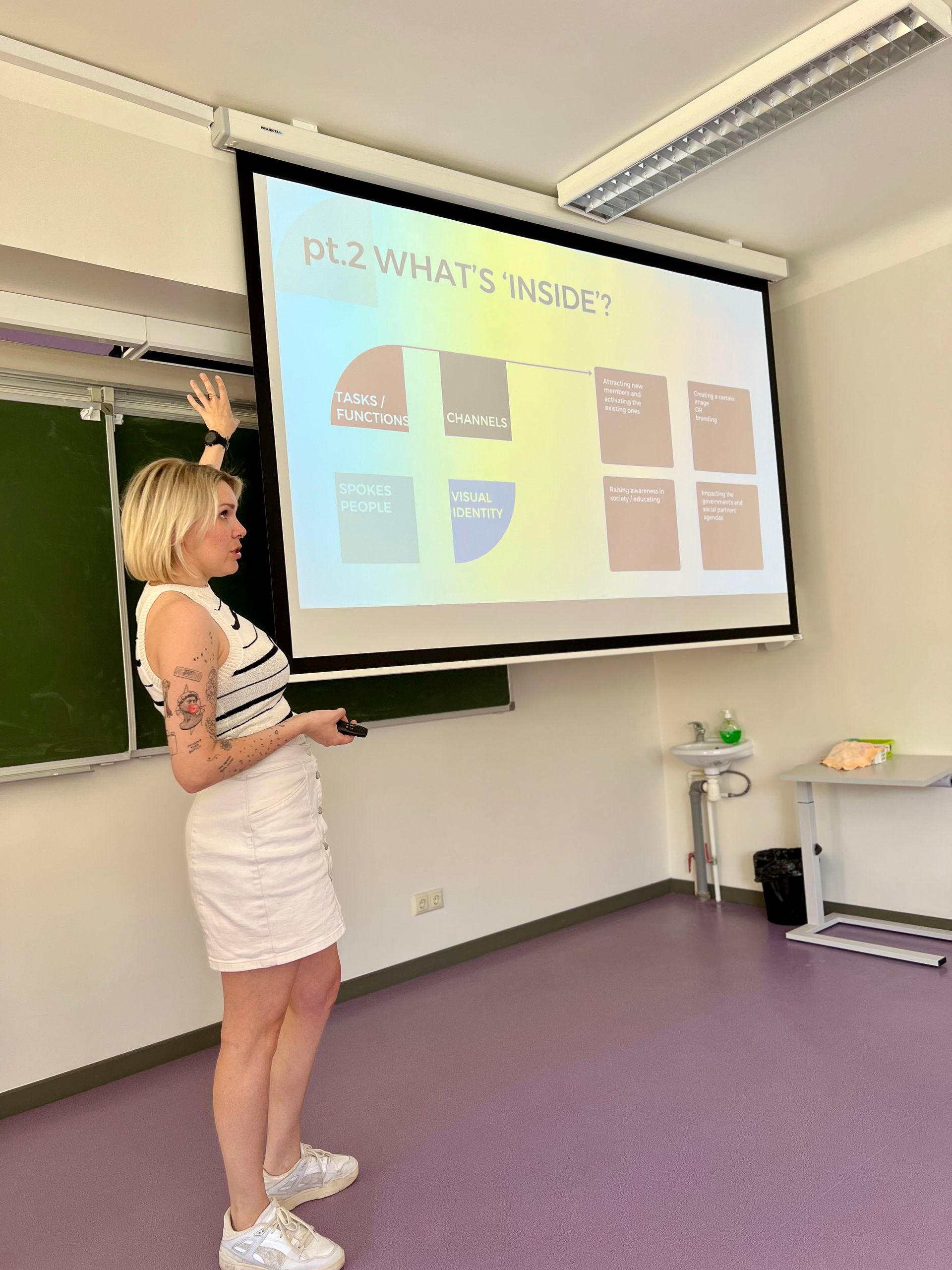 rebrendinga nozīmi un veidus, kā par to pavēstīt sabiedrībai, kā arī kopumā iepazīt komunikācijas nodaļas vadītāja dinamisko darba ikdienu. Pateicoties vieslekcijai, studenti pārliecinājās, ka ikviens studiju laikā apgūtais kurss ir vērtīgs, tādējādi gūstot iespēju attīstīt sabiedrisko attiecību, komunikācijas un mārketinga speciālistam nepieciešamās zināšanas, kompetences un prasmes. Studenti uzdeva jautājumus un guva atbildes par aktualitātēm sabiedrisko attiecību jomā un kā apvienot sabiedrisko attiecību speciālista dinamisko darba dienu ar saviem hobijiem un vēlamo atpūtu, lai gūtu veselīgu darba un brīvā laika līdzsvaru.