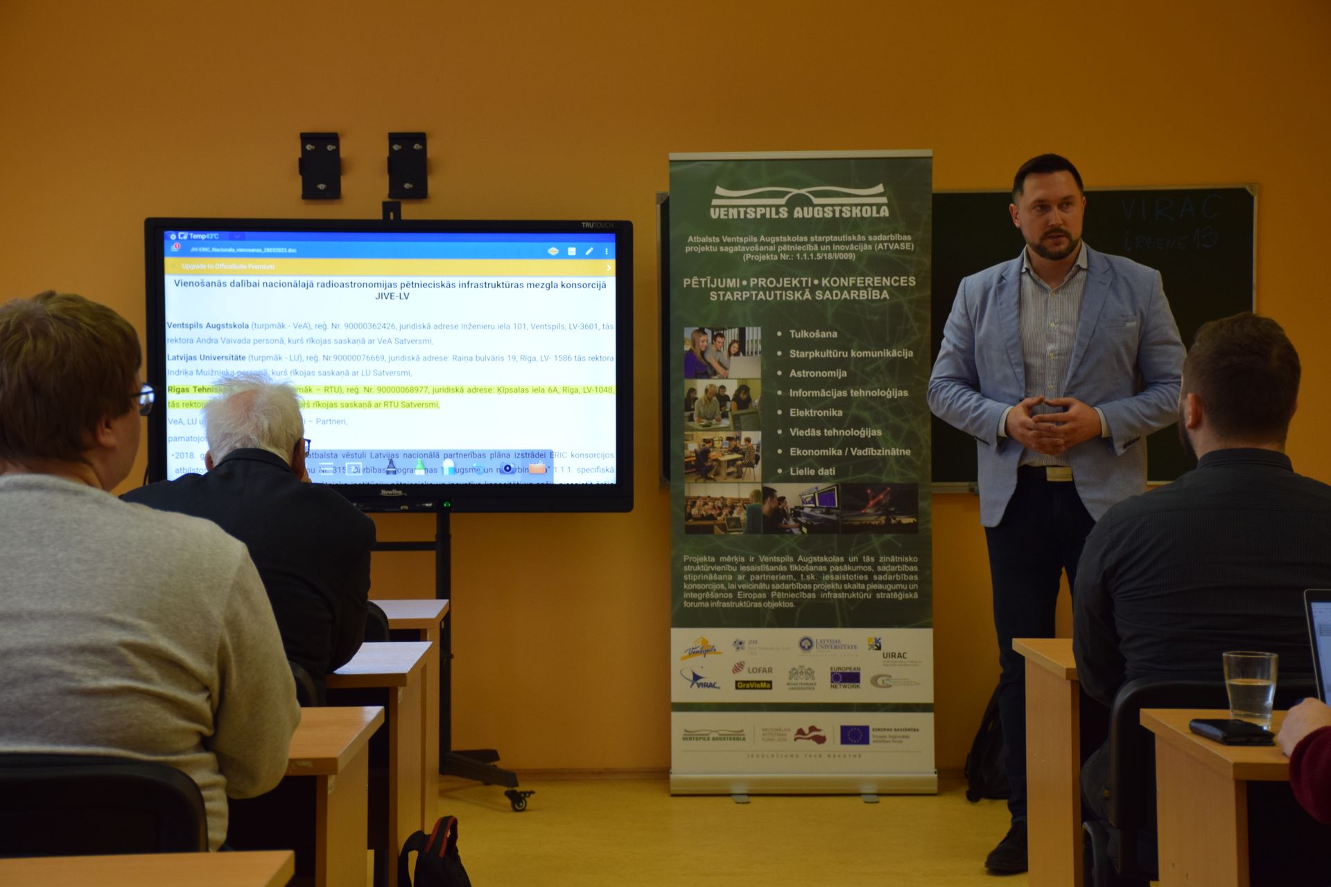 JIV-ERIC nacionālā konsorcija valdes sēdē un darba seminārā piedalījās vairāk nekā 30 dalībnieki, ko veidoja pārstāvji no Ventspils Augstskolas, Ventspils Augstskolas Inženierzinātņu institūta “Ventspils Starptautiskā Radioastronomijas centrs” (VeA IZI VSRC), Rīgas Tehniskās universitātes (RTU) un Latvijas Universitātes (LU) un citām iestādēm.