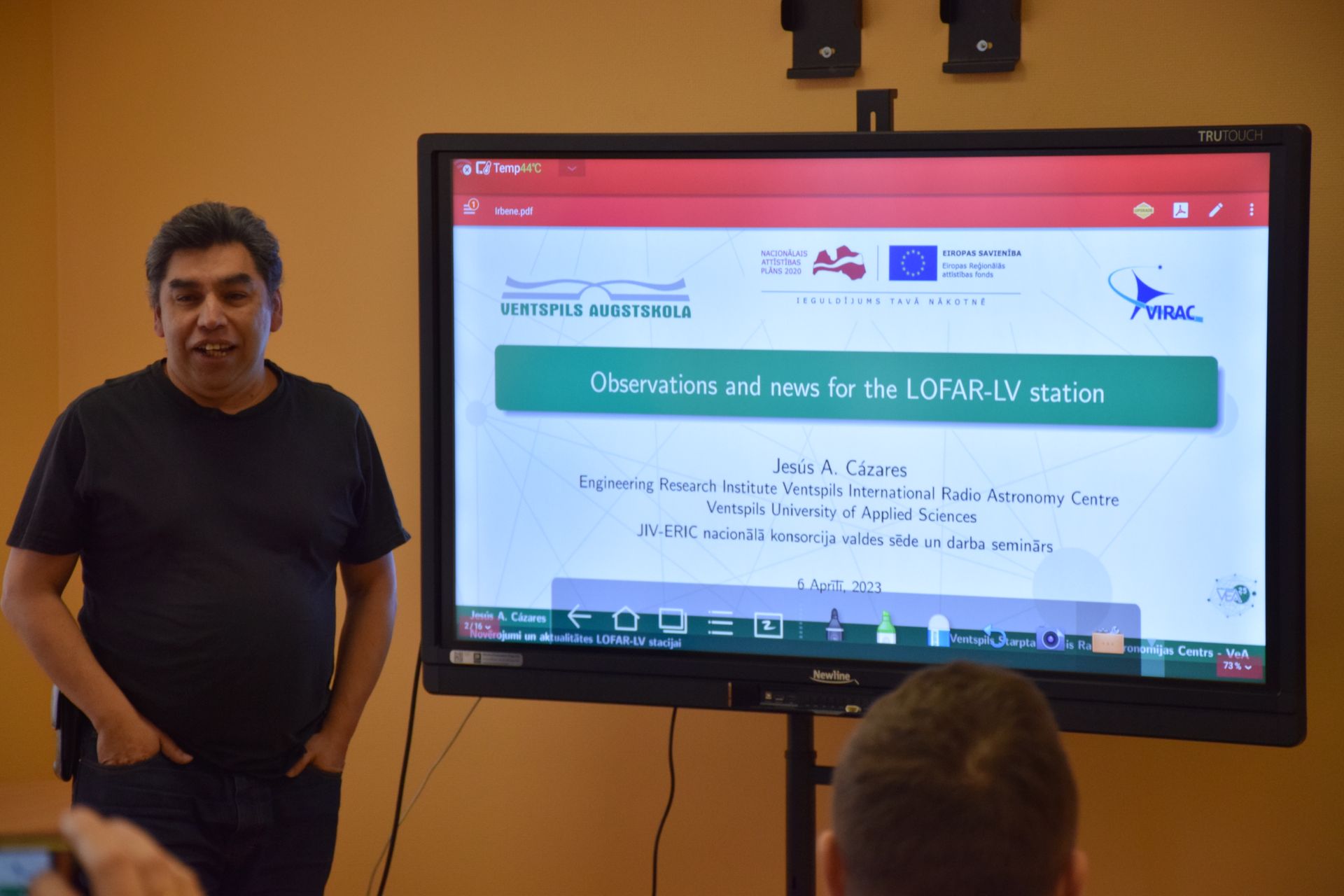 JIV-ERIC darba semināra turpinājumā VeA IZI VSRC Astronomijas un astrofizikas nodaļas vadošais viespētnieks Jesus Alberto Cazares Montes ziņoja par novērojumiem, aktualitātēm, kā arī nākotnes plāniem LOFAR-LV stacijai.
