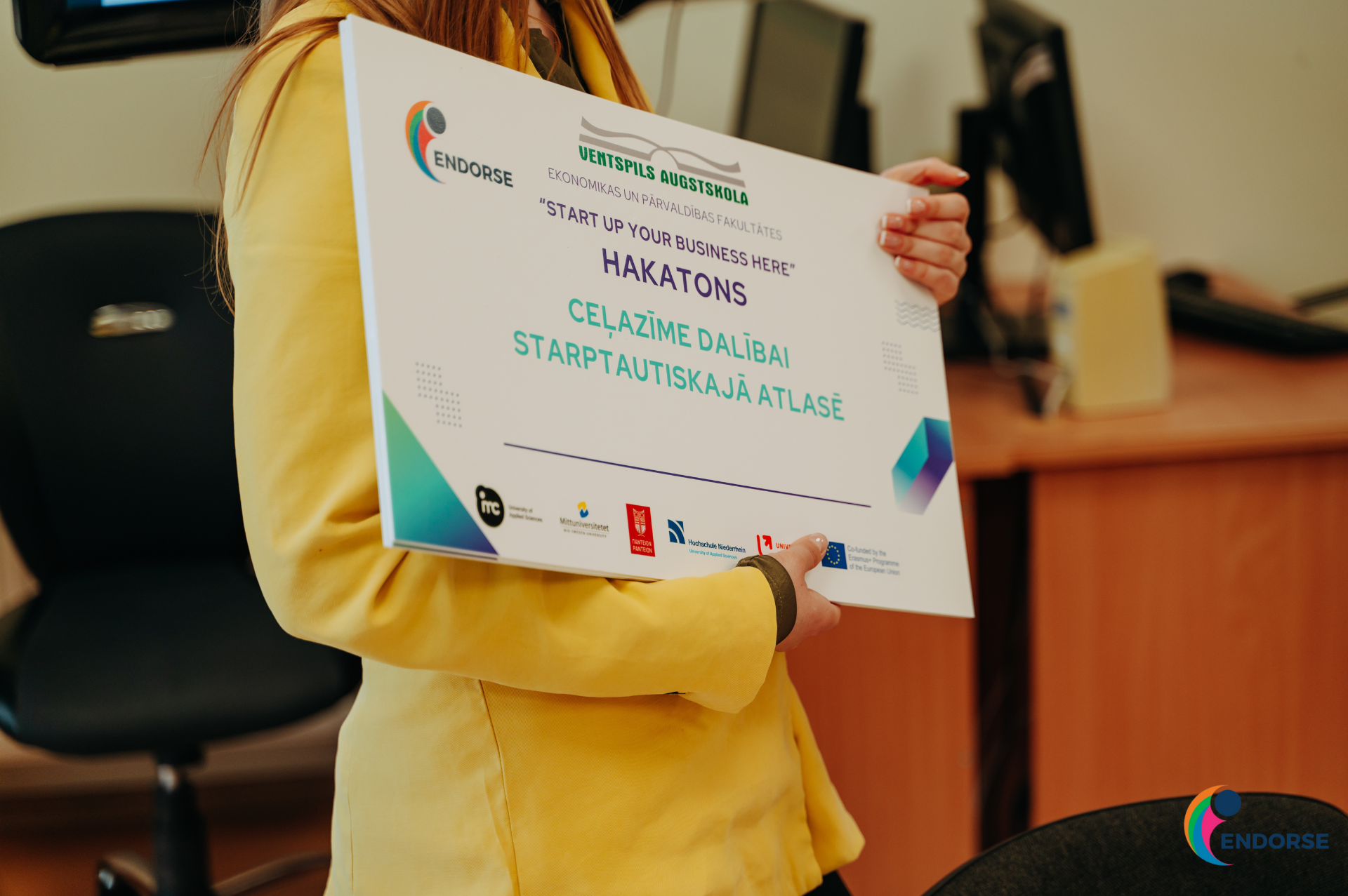 24. aprīlī ierastais studiju process Ekonomikas un pārvladības fakultātē tika aizstāts ar kopīgu, rodošu aktivitāti visiem 1.-3. kursa studējošajiem kopā. Studenti piedalījās biznesa ideju hakatonā “Start up your business here”. Paralēli Ventspils Augstskolai, šāds hakatons norisinājās arī Erasmus+ projekta “ENDORSE” partneruniversitātēs Austrijā Kremsā, Polijā University of Lodz, Midsweden university Zviedrijā.