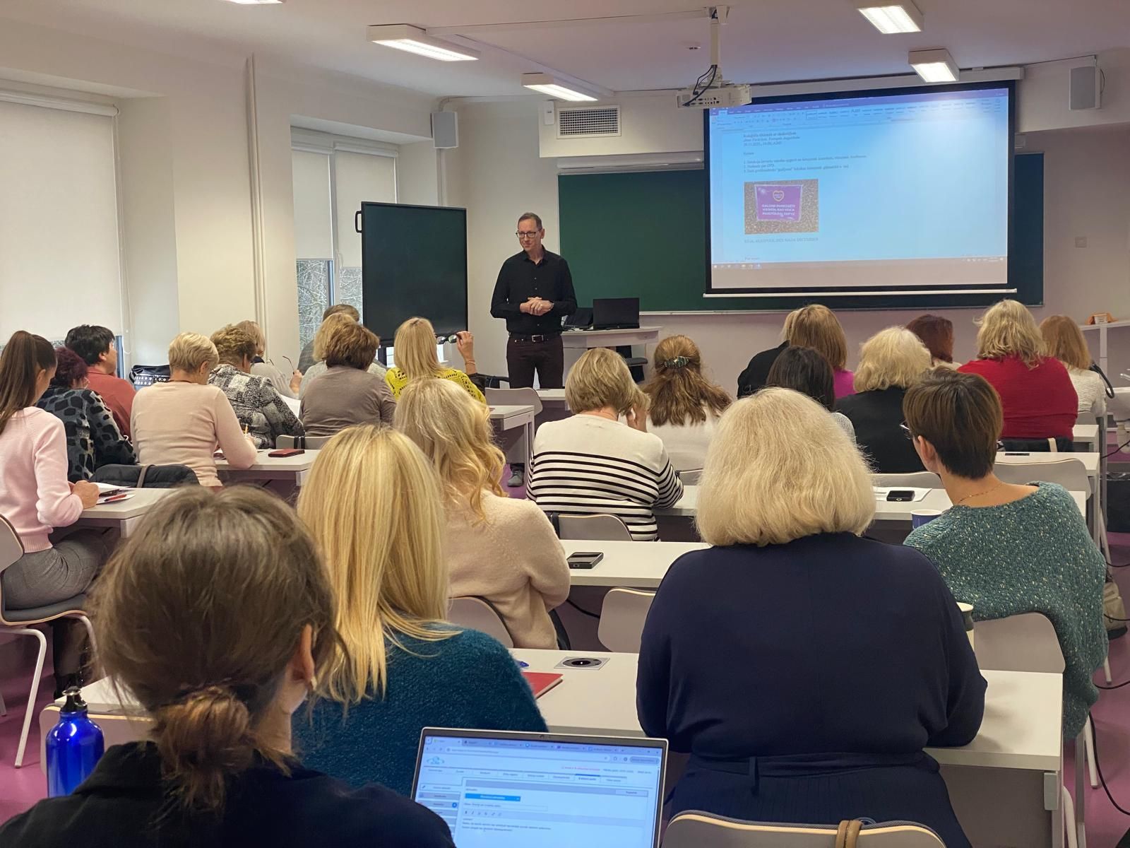 Ventspils Augstskolas Tulkošanas studiju fakultātes dekāns Jānis Veckrācis 20. novembrī Ventspils Augstskolā vadīja profesionālās pilnveides nodarbības Ventspils pilsētas un novada latviešu valodas skolotājām. Nodarbībās tika rosināta diskusija par aktuālām norisēm un pārmaiņām latviešu valodas mācīšanā skolas un augstskolas kontekstā, par jauniešu latviešu valodas lietojuma iezīmēm un par iespējamām turpmākām tendencēm. Īsi tika pārrunāta akadēmisku tekstu rakstīšanas specifika vidusskolēnu zinātniski pētniecisko darbu izstrādē. Tomēr svarīgākā nodarbību tēma bija vērojumi un ieteikumi saistībā ar raksturīgām gramatiskām problēmām un diskutablu leksikas un izteiksmes izvēli jauniešu rakstu darbos.