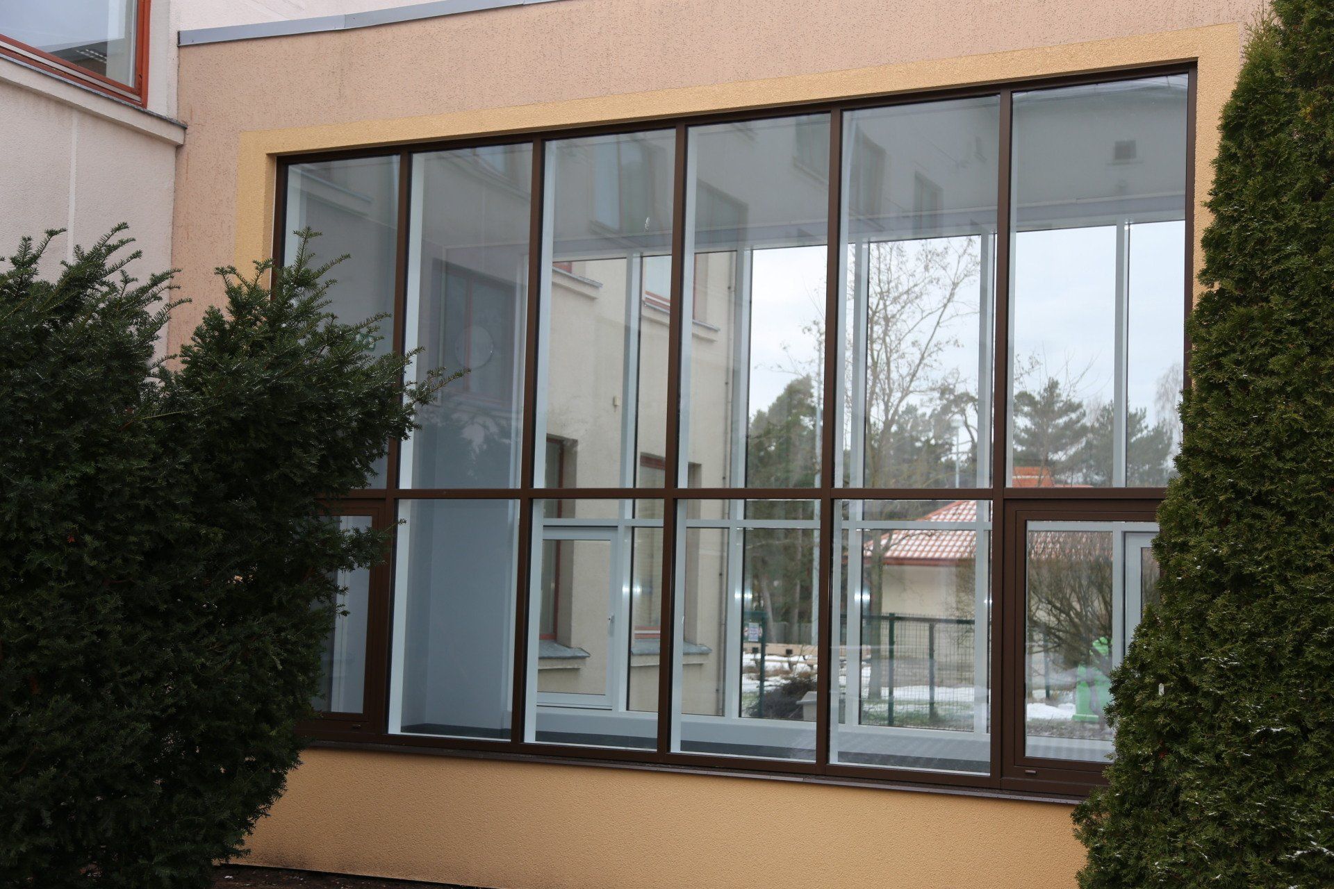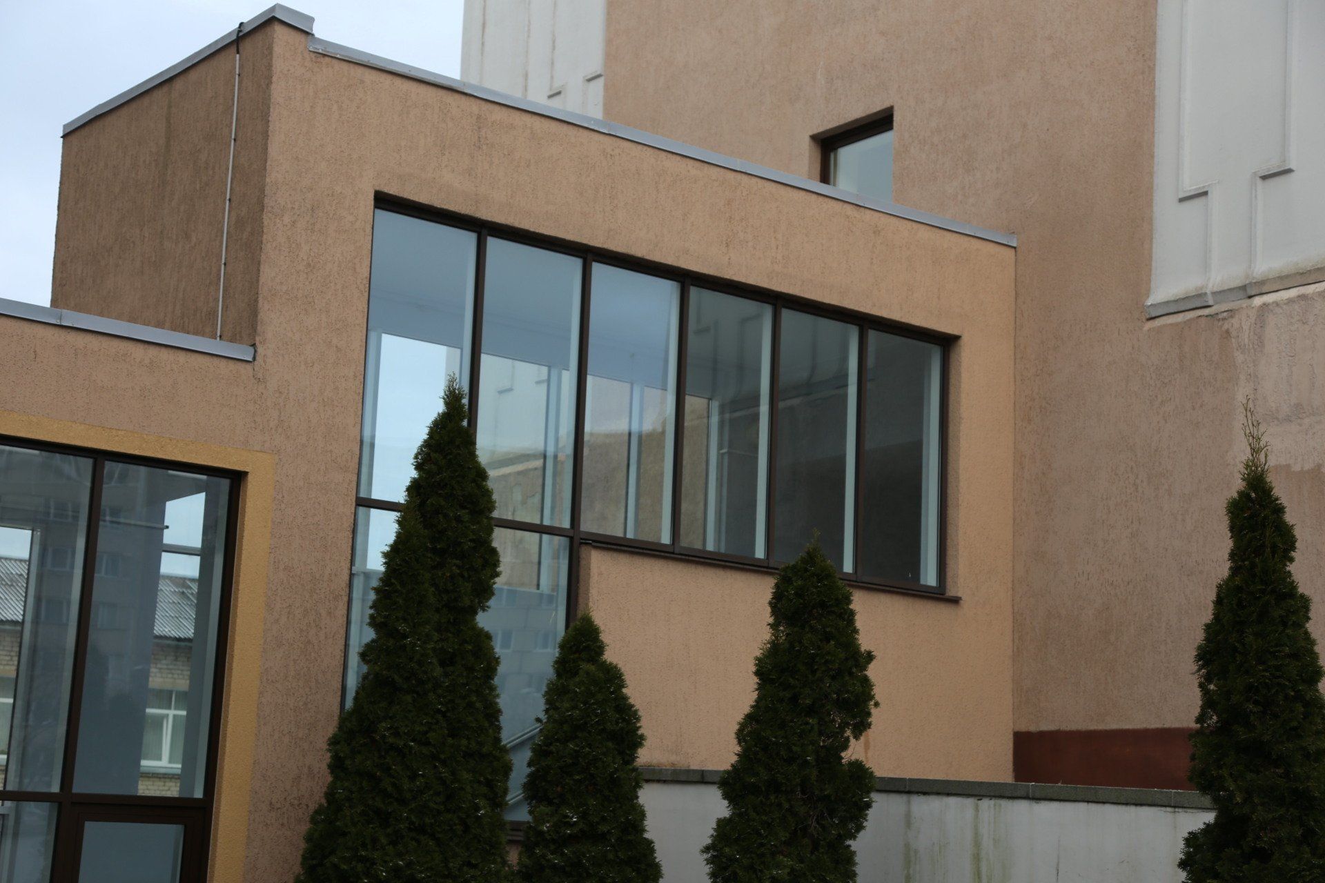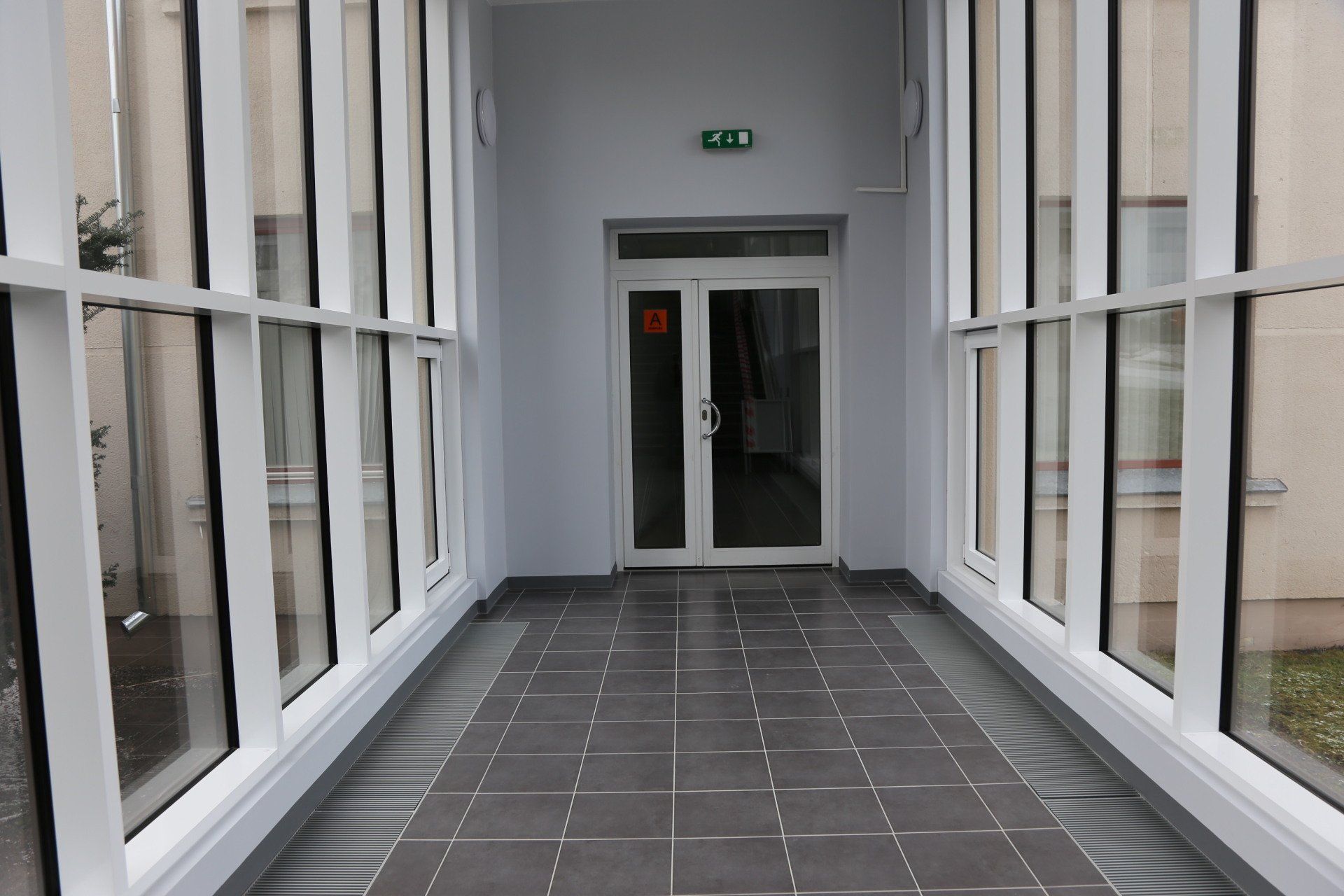 Domājot par korpusa siltumizolāciju tika uzlabota galvenā ēkas ieeja - izveidots vējtveris - stiklota alumīnija konstrukcija ar divām automātiskajām durvīm. Vējtveris samazina siltuma zudumus gada aukstajā laikā, kā arī uzlabo galvenās ieejas izskatu. Durvis nomainītas arī katra stāva kāpņu telpās, savukārt gaiteņos esošās sadalošās durvis demontētas, lai paplašīnātu gaiteņus un padarītu pārvietošanos ērtāku.