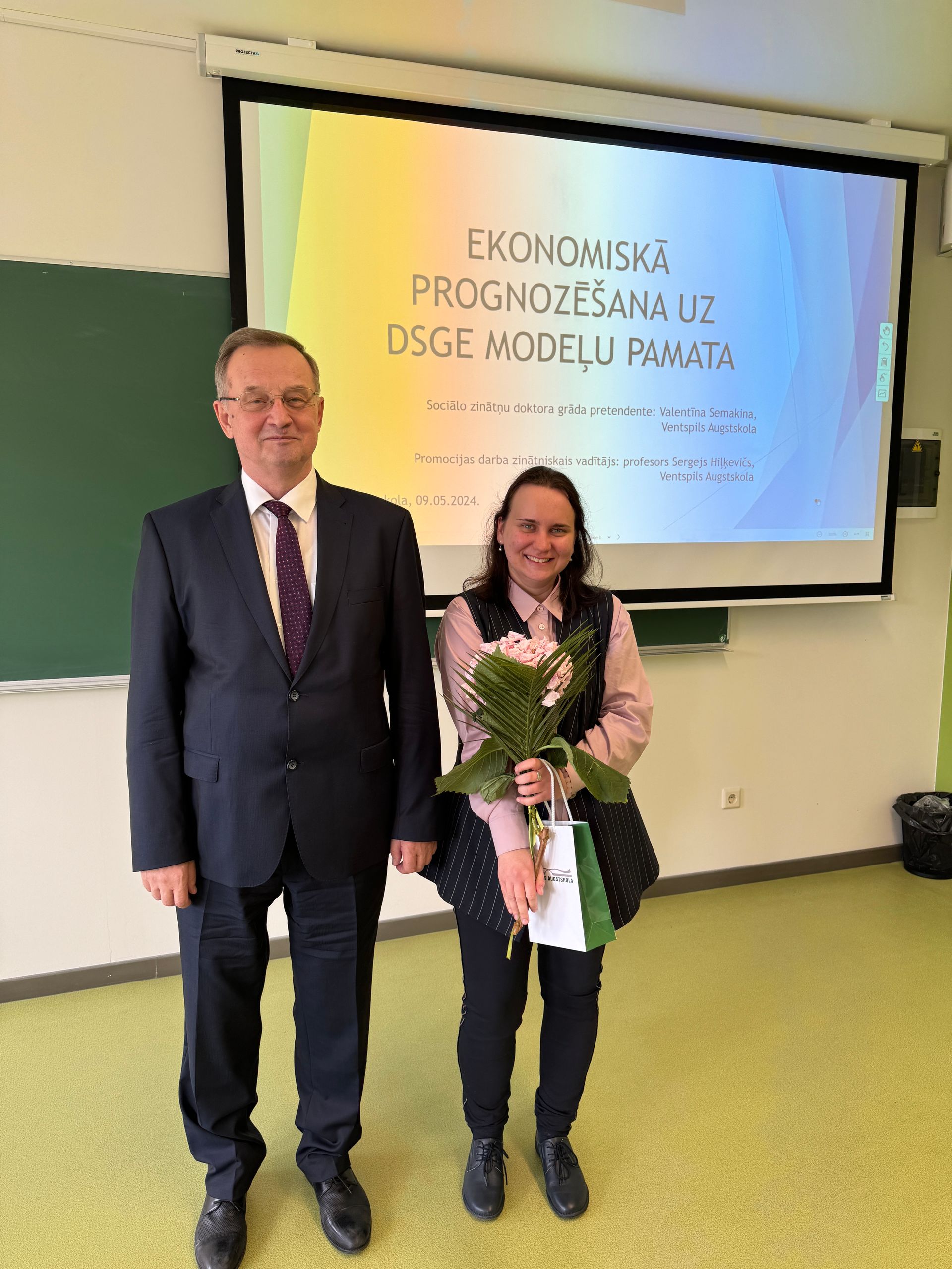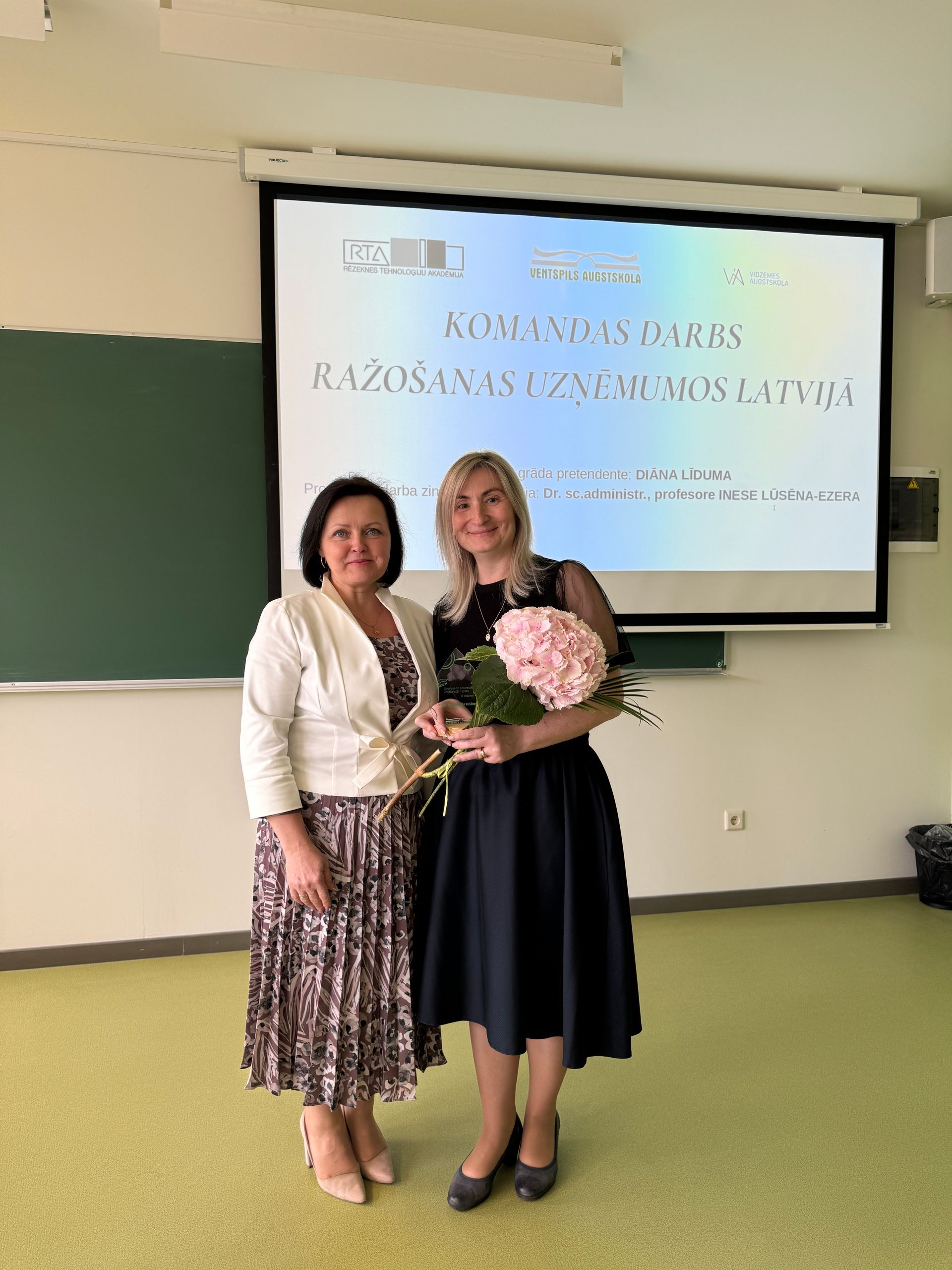 9. maijā Rēzeknes Tehnoloģiju akadēmijas, Vidzemes Augstskolas un Ventspils Augstskolas Ekonomikas un uzņēmējdarbības promocijas padomes atklātajā sēdē divas VeA zinātnes doktora grāda pretendentes sekmīgi aizstāvēja savu promocijas darbu. DIĀNA LĪDUMA kļuva par otro un VALENTĪNA SEMAKINA par trešo zinātnes doktora grāda (Ph.D.) ieguvēju sociālajās zinātnēs Ventspils Augstskolā kopīgajā doktora studiju programmā “Ekonomika un uzņēmējdarbība”!