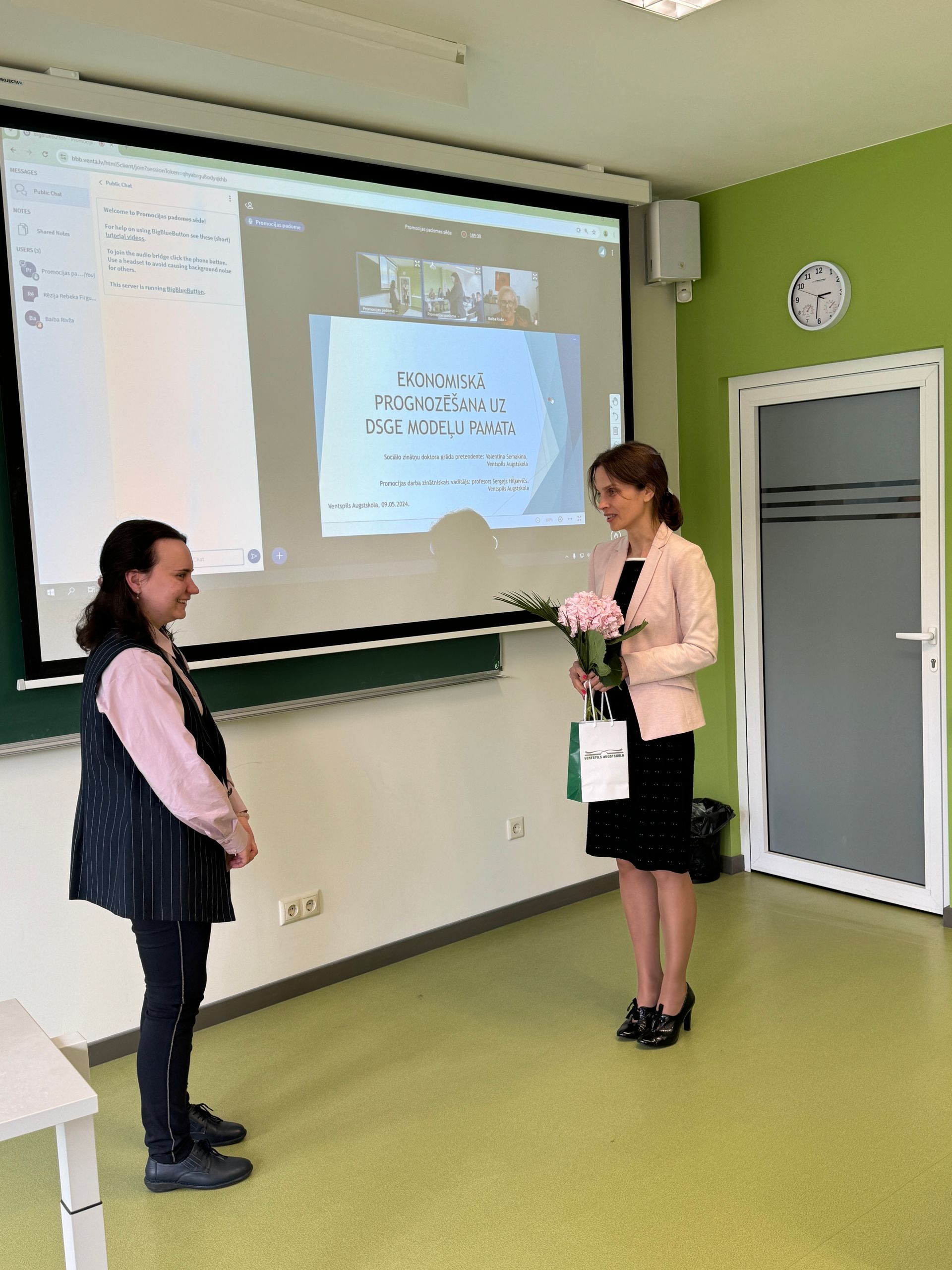 Diānas Līdumas promocijas darba tēma ir “Komandas darbs ražošanas uzņēmumos Latvijā" (angļu valodā – "Teamwork in manufacturing companies in Latvia") un Valentīnas Semakinas promocijas darba tēma – "Ekonomiskā prognozēšana uz DSGE modeļu pamata" (angļu valodā – "Economic forecasting based on DSGE models "). Darbi pieejami: ŠEIT