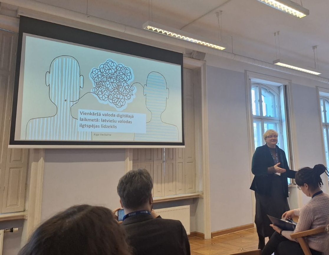 Aiga Veckalne saistībā ar izstrādājamo promocijas darbu referēja par tēmu “Vienkāršā valoda digitālajā laikmetā: latviešu valodas ilgtspējas līdzeklis”.