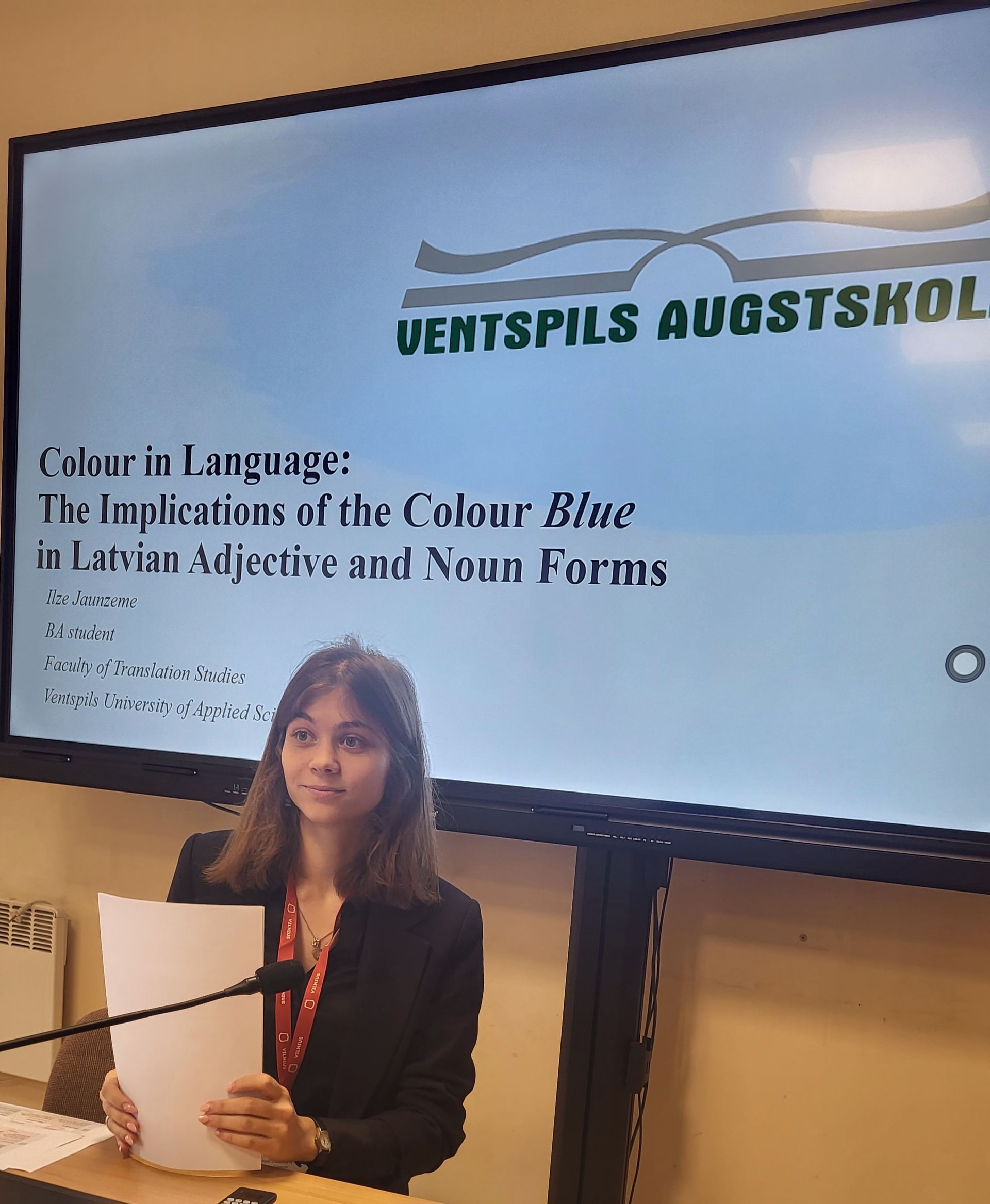 Tulkošanas studiju fakultātes bakalaura studiju programmas “Tulkošana un valodu tehnoloģija” 3. kursa studente Ilze Jaunzeme 4. un 5. oktobrī piedalījās 11. starptautiskajā Baltijas studentu konferencē “Bridges in the Baltics” (Tilti Baltijā), kas šogad notika Viļņā, turklāt dalībnieku skaits – lielākais pasākuma vēsturē. Mūsu studente iepazīstināja ar pētījumu par zilās krāsas nozīmi kultūrā un tās lingvistiskajām izpausmēm.