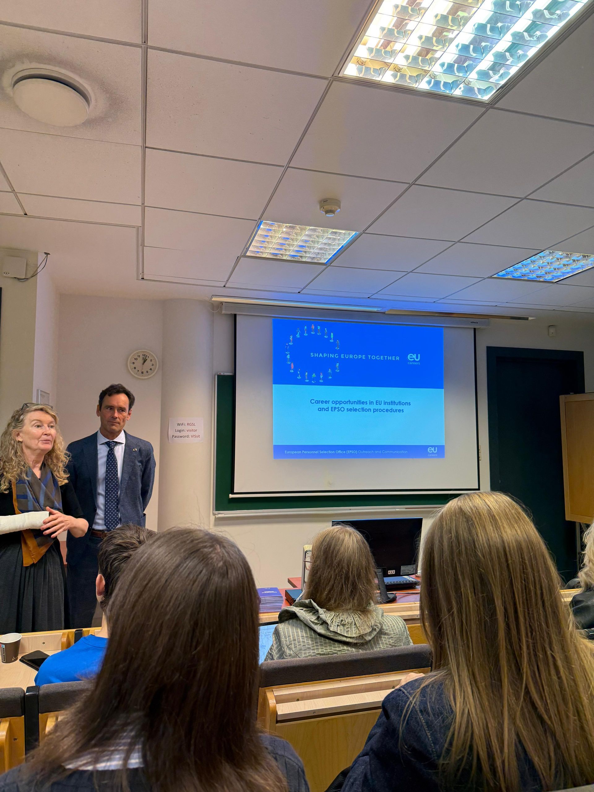 Pēc divām paneļdiskusijām sekoja pusdienu pauze, pēc kuras mūsu studentu grupa dalījās divās daļās – viena apmeklēja informatīvu lekciju par darba un prakses iespējām Eiropas Savienības struktūrvienībās, bet otra baudīja debašu cīņas, kur jaunieši aizstāvēja savus viedokļus par Eiropas nākotni. Vēlāk tika dota iespēja piedalīties Eiropas Parlamenta biroja Latvijā rīkotajā viktorīnā par Eiropas Savienību un laimēt balvas.