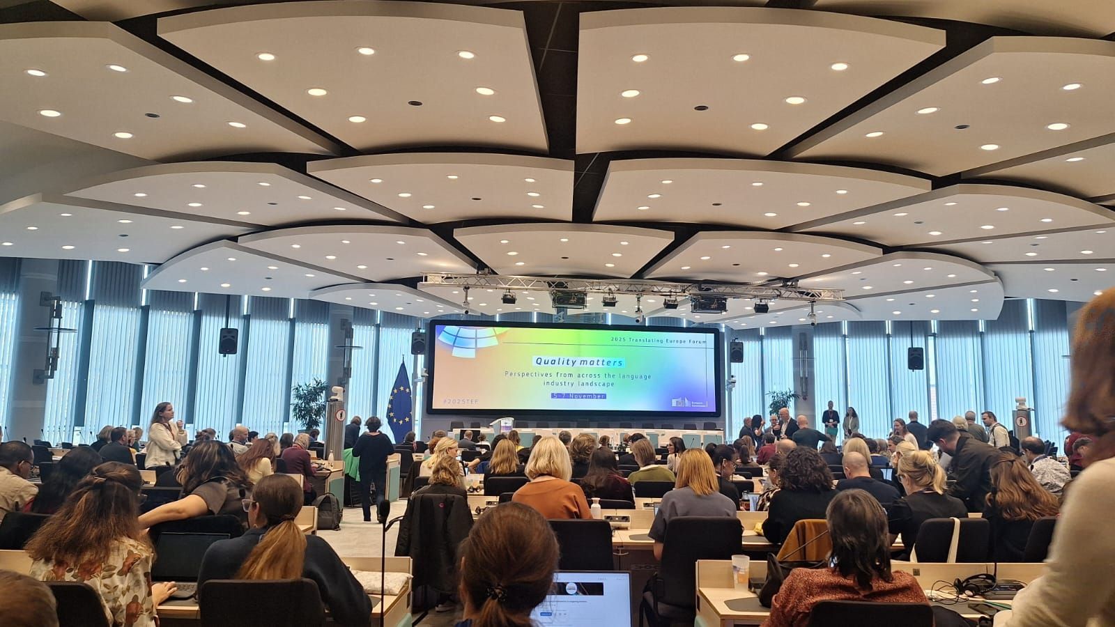 Ventspils Augstskolas maģistra studiju programmas “Tulkošana un terminoloģija” studente Elīna Dergača 2025. gada 5. novembrī devās uz Briseli, lai piedalītos Eiropas Komisijas Tulkošanas ģenerāldirektorāta (DGT) rīkotajā forumā “Tulkojam Eiropu 2025” (Translating Europe Forum 2025). Forums norisinājās trīs dienas un pulcēja 24 tulkošanas maģistra programmu tīkla “Eiropas maģistrs tulkošanā” (European Master's in Translation, EMT) studentus. Šogad forums notika jau divpadsmito reizi, pulcējot tulkošanas nozares pārstāvjus no visas Eiropas. Pasākuma devīze bija “Kvalitātei ir nozīme” (Quality Matters).
