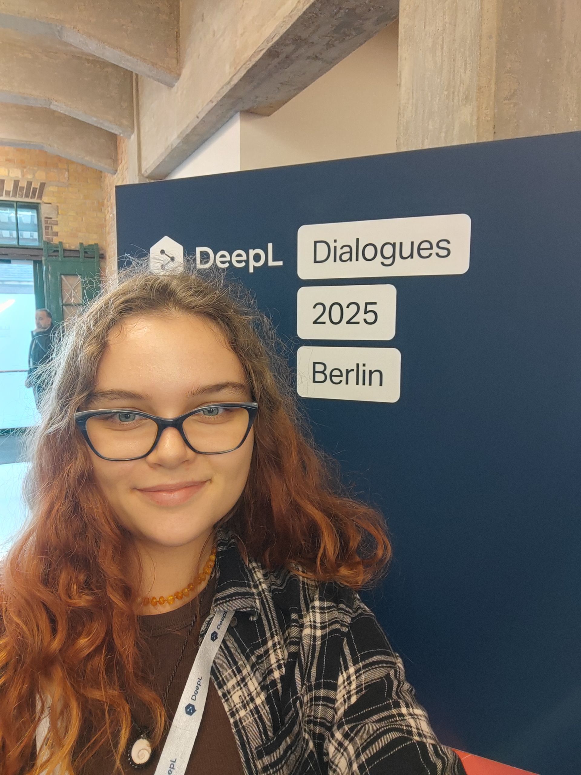 Šarlote stāsta: “DeepL konference bija ļoti aizraujoša un iedvesmojoša pieredze. Uzzināju daudz jauna par funkcijām, kas drīzumā tiks ieviestas, un par projektiem, kas vēl ir izstrādes procesā. Mani īpaši pārsteidza, cik ļoti DeepL ir attīstījies, jo kā studente es to līdz šim pazinu tikai kā vienkāršu mašīntulkošanas rīku un pat nenojautu par visām citām funkcijām un biznesa rīkiem. Bija ļoti iedvesmojoši klausīties, kā DeepL plāno attīstīties kopā ar mākslīgo intelektu, un šī pieredze ne tikai paplašina zināšanas par tulkošanas tehnoloģijām, bet arī liek aizdomāties par to, kā MI maina veidu, kā mēs strādājam.”