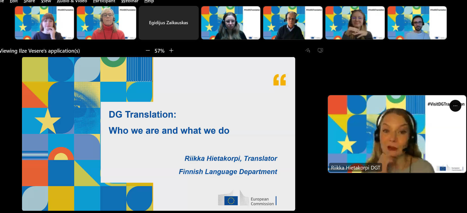 Tulkošanas studiju maģistra programmas studenti piedalījās virtuālā vizītē Eiropas Komisijas Tulkošanas ģenerāldirektorātā