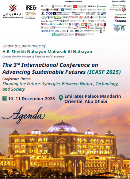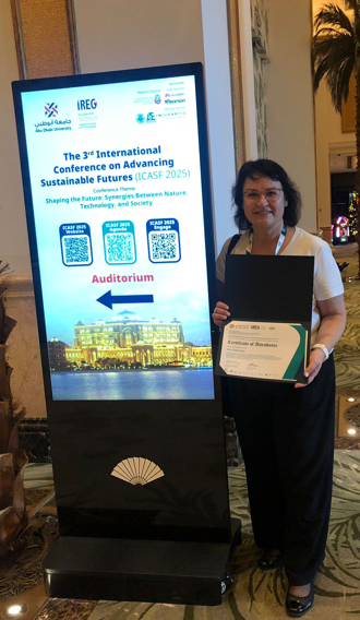 2025. gada 10-11. decembrī, profesore Una Libkovska Valsts pētījuma programmas projekta “Pierādījumos balstītu risinājumu izstrāde pieaugušo efektīvai profesionālās kompetences pilnveidei un tās rezultātu pārneses uz praksi novērtēšanai Latvijā” (VPP- IZM-Izglītība-2023/4-0001) ietvaros piedalījās Abu Dhabi Universitātes rīkotajā 3. starptautiskajā zinātniskajā konferencē “Ilgtspējīgas nākotnes veicināšana. Nākotnes veidošana: sinerģija starp dabu, tehnoloģijām un sabiedrību, ICASF 2025 (3rd International Conference on Advancing Sustainable Futures. Shaping the Future: Synergies Between Nature, Technology, and Society, ICASF 2025), kura norisinājās Abu Dhabi, AAE.