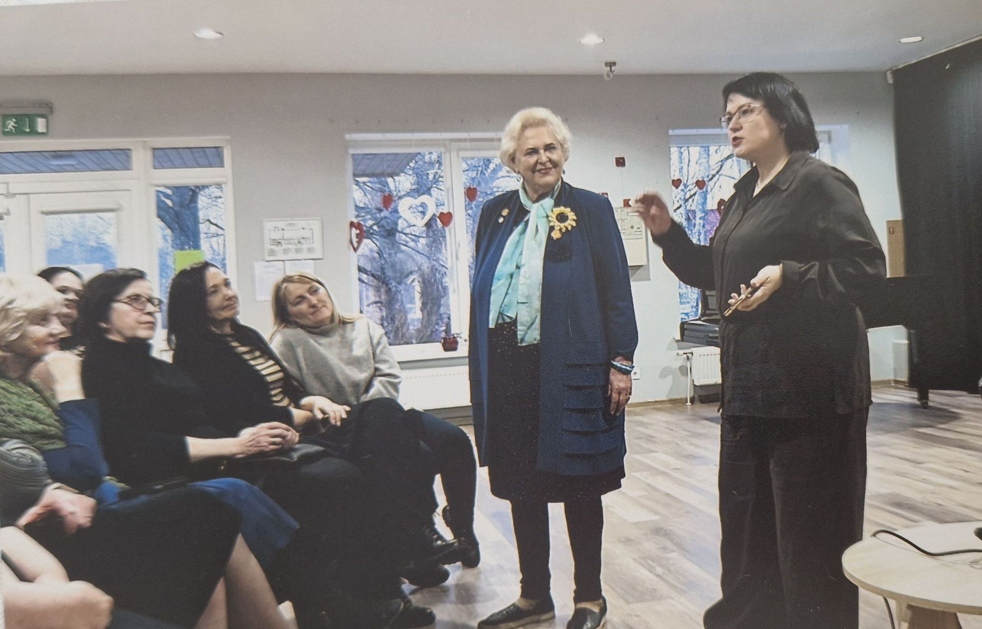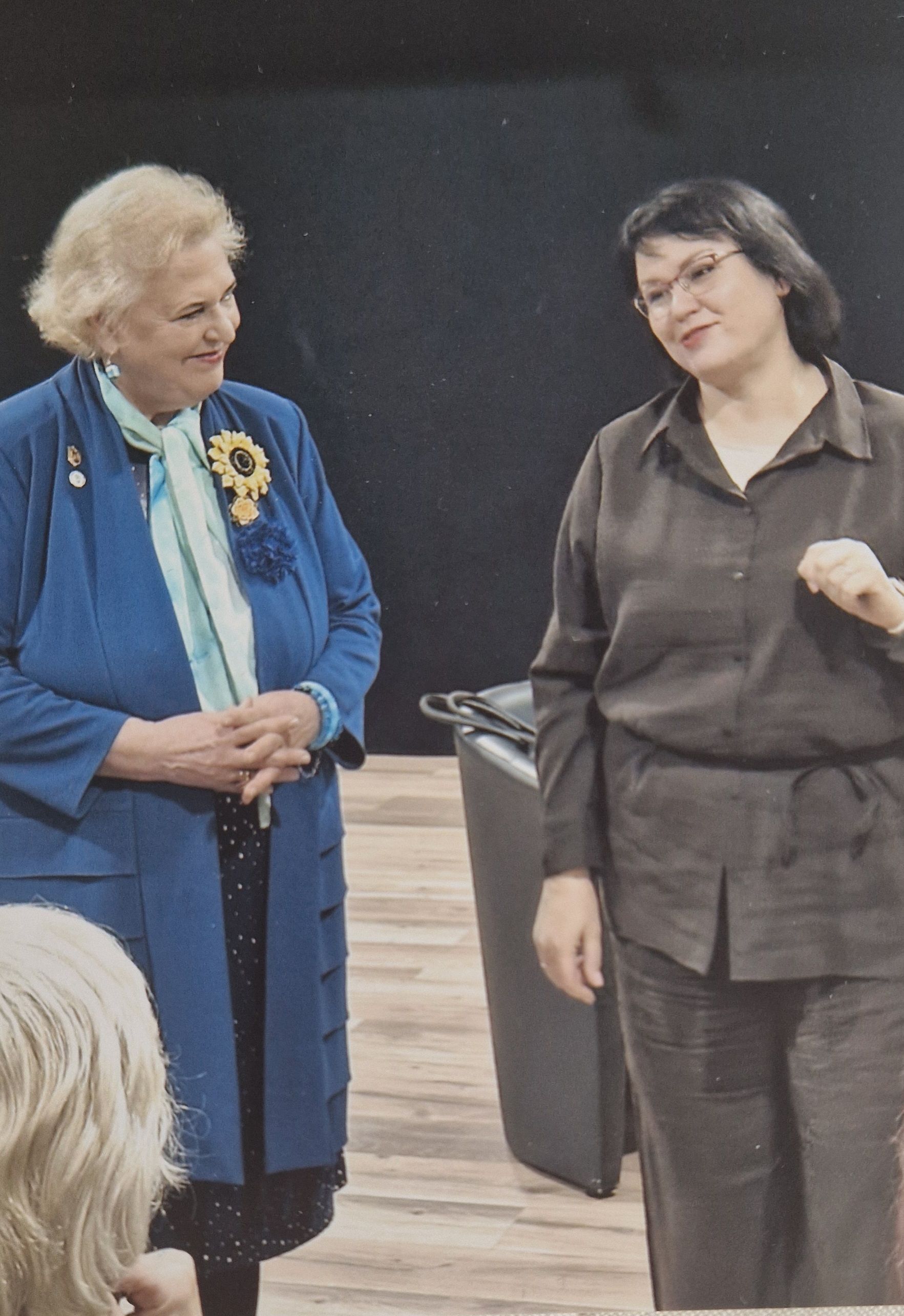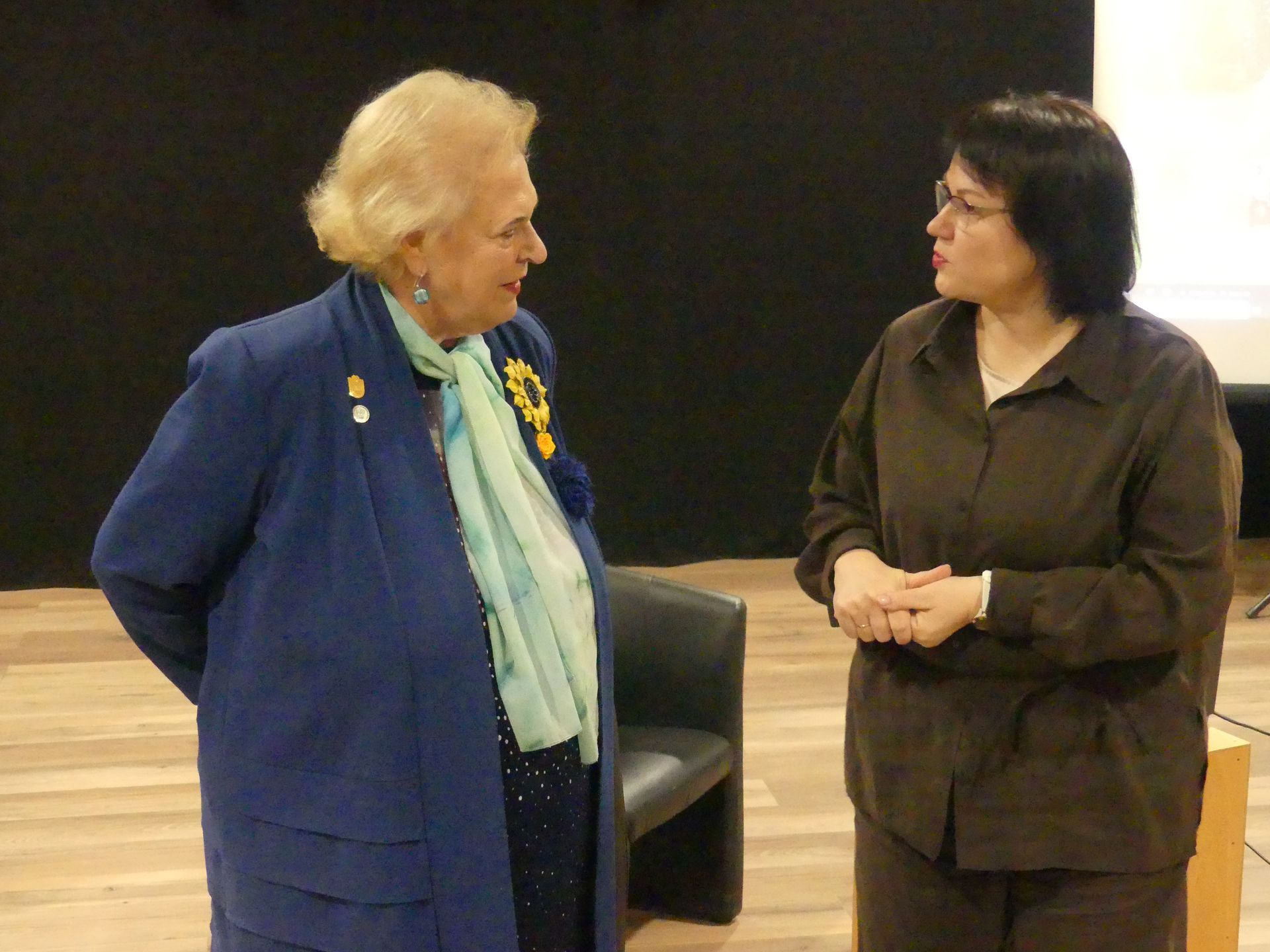 Ventspils augstskolas profesore un VPP vadošā pētniece Una Libkovska dalās pieredzē Latvijas Zinātņu akadēmijas akadēmiķes Baibas Rivžas rīkotajā tikšanās ar Ventspils novada iedzīvotajiem “Jaunais students mūsdienās: izglītība mūža garumā”.