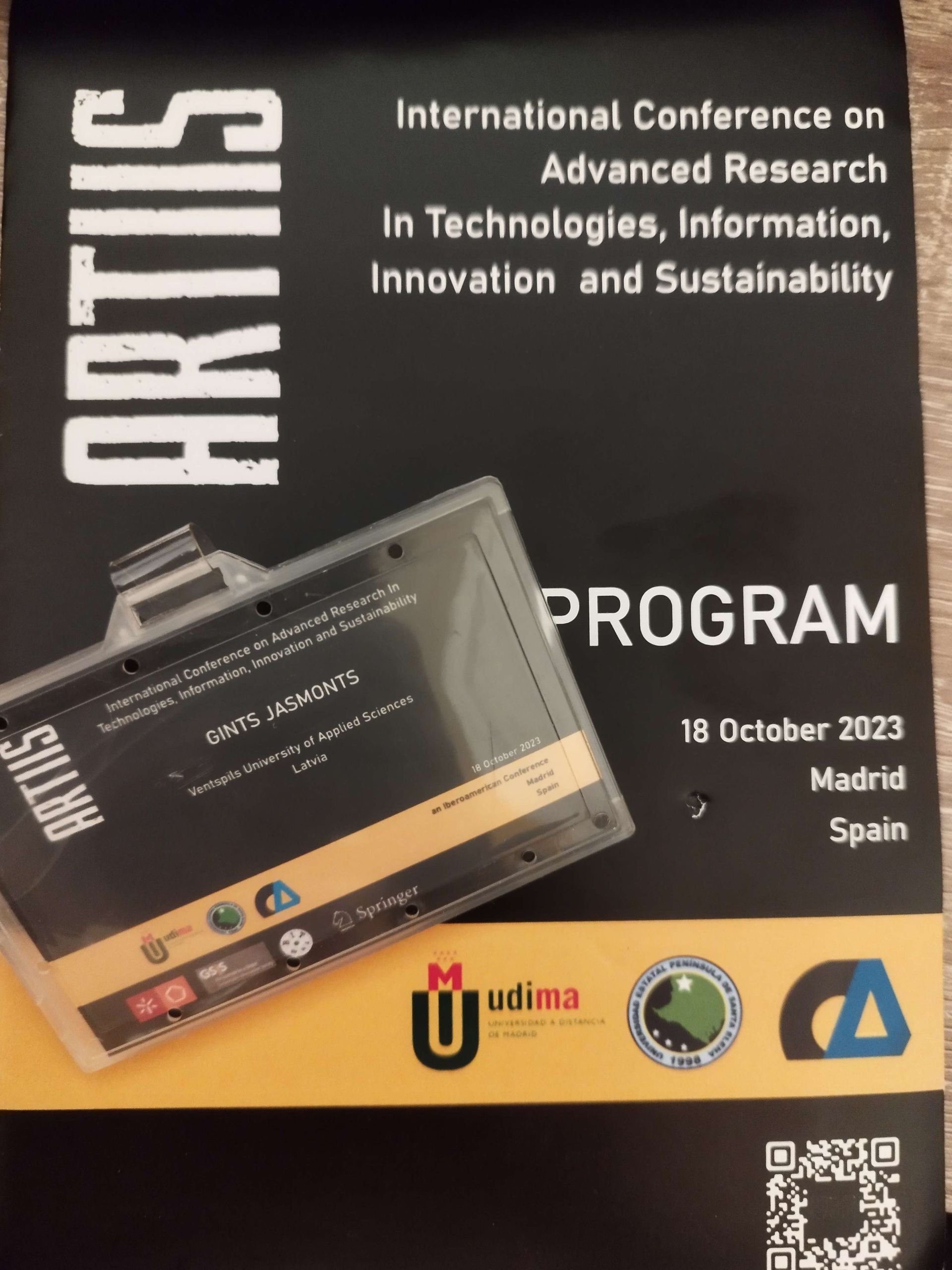 No 18. līdz 20. oktobrim Ventspils Augstskolas Inženierzinātņu institūta “Ventspils Starptautiskā radioastronomijas centrs” (VeA IZI VSRC) zinātniskais asistents Gints Jasmonts piedalījās konferencē “Advanced Research in Technologies, Information, Innovation and Sustainability (ARTIIS)” Madridē, Spānijā, lai prezentētu pētījuma “New open access interactive multifunctional database management system for research of biological terminology: technical solutions” rezultātus. Pētījums izstrādāts Ventspils Augstskolas un Dārzkopības institūta (DI) sadarbībā īstenotajā Latvijas Zinātnes padomes finansētā projektā “Viedais bioloģijas speciālās leksikas informācijas sistēmu komplekss lingvistiskās daudzveidības pētniecībai un saglabāšanai” (IMDS), proj. Nr.lzp-2020/1-0179. Prezentācijā tika pastāstīts par kopautorībā ar VeA IZI VSRC pētnieci Karinu Šķirmanti, programmētāju Robertu Ervīnu Ziediņu, kā arī VeA Tulkošanas studiju fakultātes pētnieci Silgu Sviķi un DI vadošo pētnieku Arturu Stalažu izstrādāto organismu nosaukumu uzkrāšanas un pārvaldības sistēmu, lai piesaistītu potenciālos interesentus, kas veic bioloģijas speciālās leksikas pētījumus.