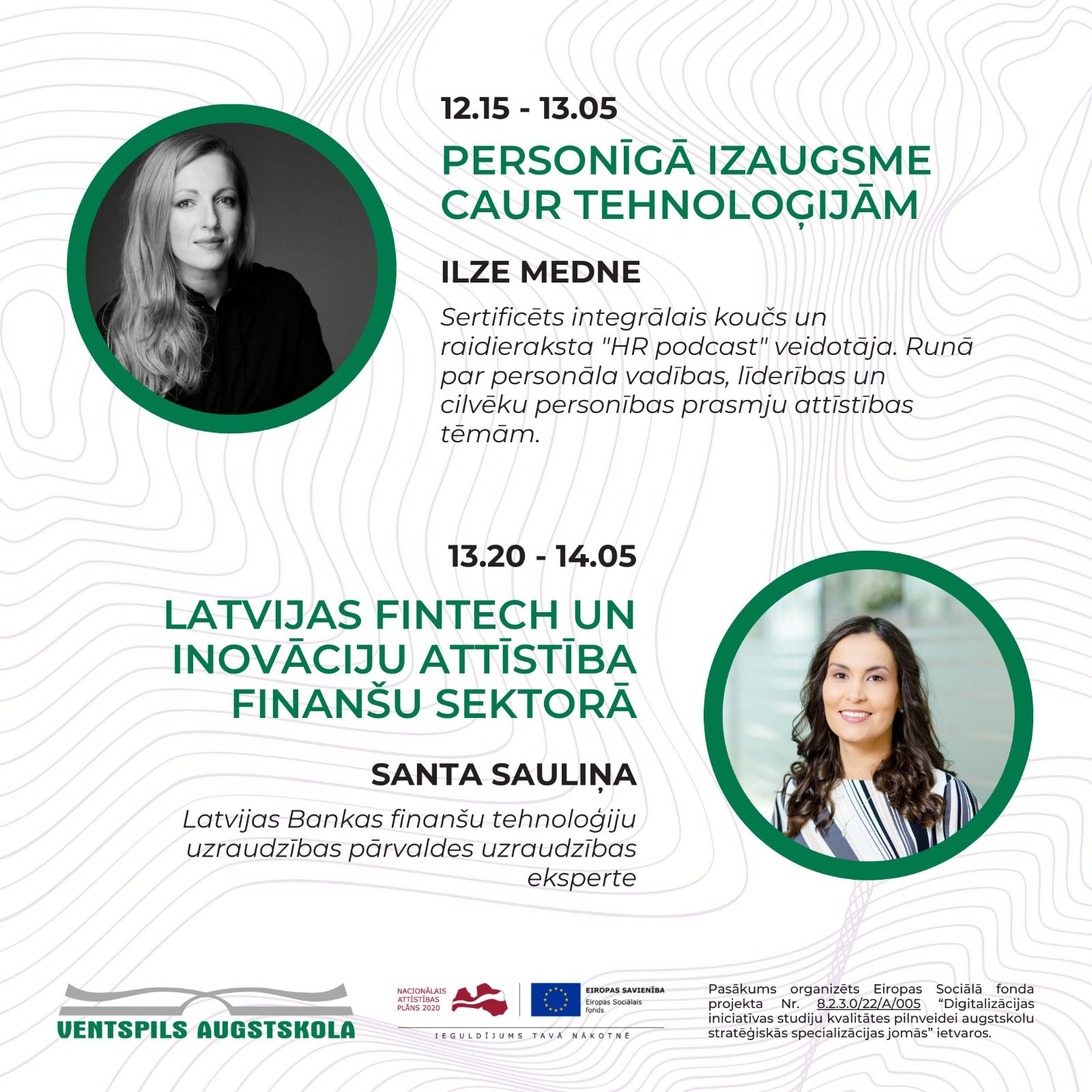 - Plkst. 12.15 – 13.05 notiks lekcija “Personīgā izaugsme caur tehnoloģijām”, ko sniegs sertificēts koučs un raidieraksta “HR podcast” veidotāja Ilze Medne.