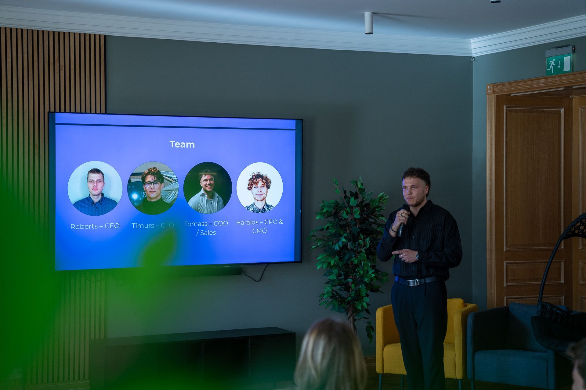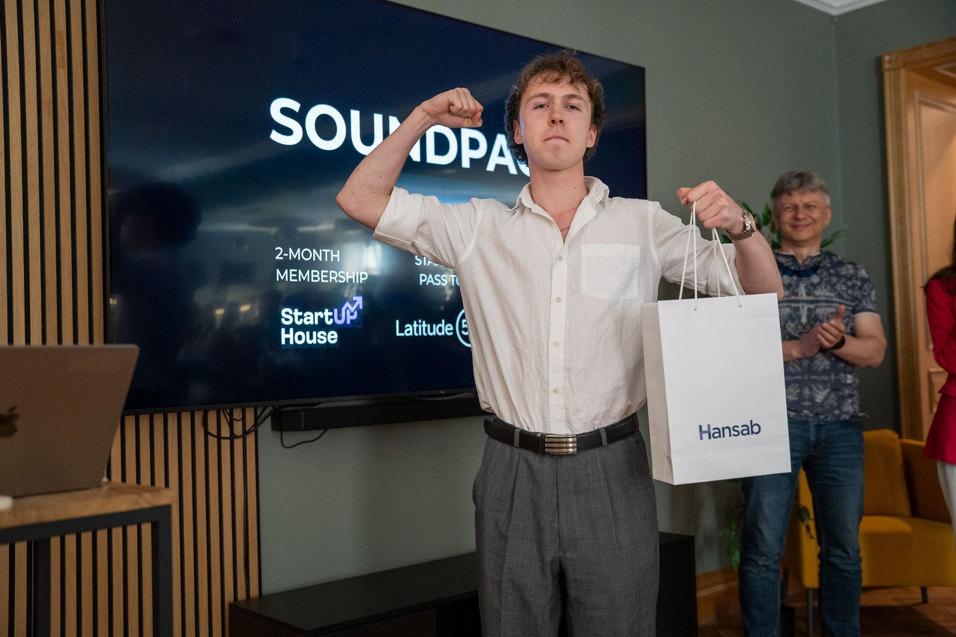 Par uzvarētājiem tika atzīta komanda “SOUNDPACK”, kuru pārstāvēja Ventspils Augstskolas students Ronalds Palacis. Komandas izstrādātā ideja – ar mākslīgā intelekta palīdzību ģenerēt pilnībā saskanīgus un bezmaksas skaņas paraugu komplektus mūzikas industrijai.