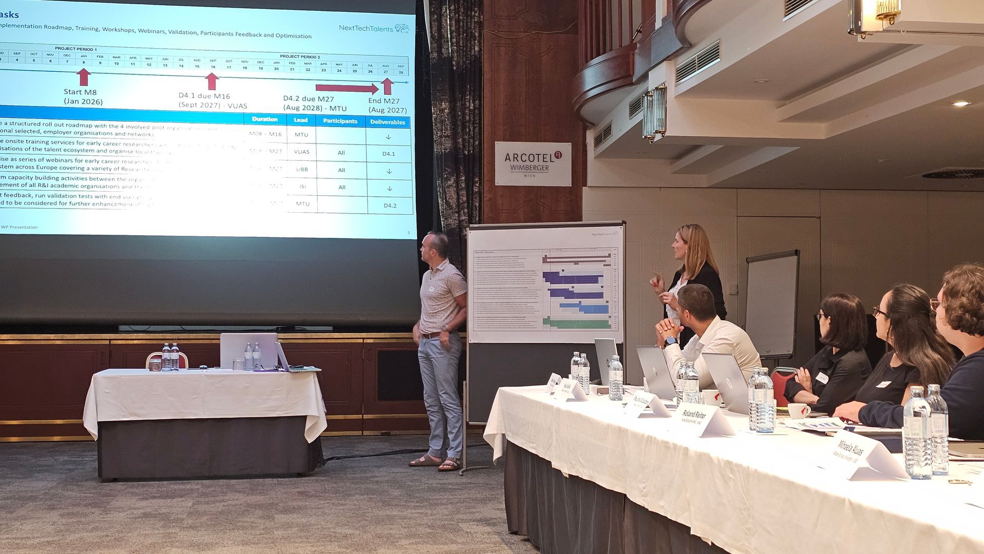 Ventspils Augstskolas pārstāvji 3. un 4. septembrī kopā ar sadarbības partneriem no piecām valstīm Vīnē turpināja darbu pie projekta NextTechTalent īstenošanas. Projekta galvenais mērķis ir veicināt agrīnā posma pētnieku kompetenču attīstību un veidot starptautisku sadarbības tīklu.