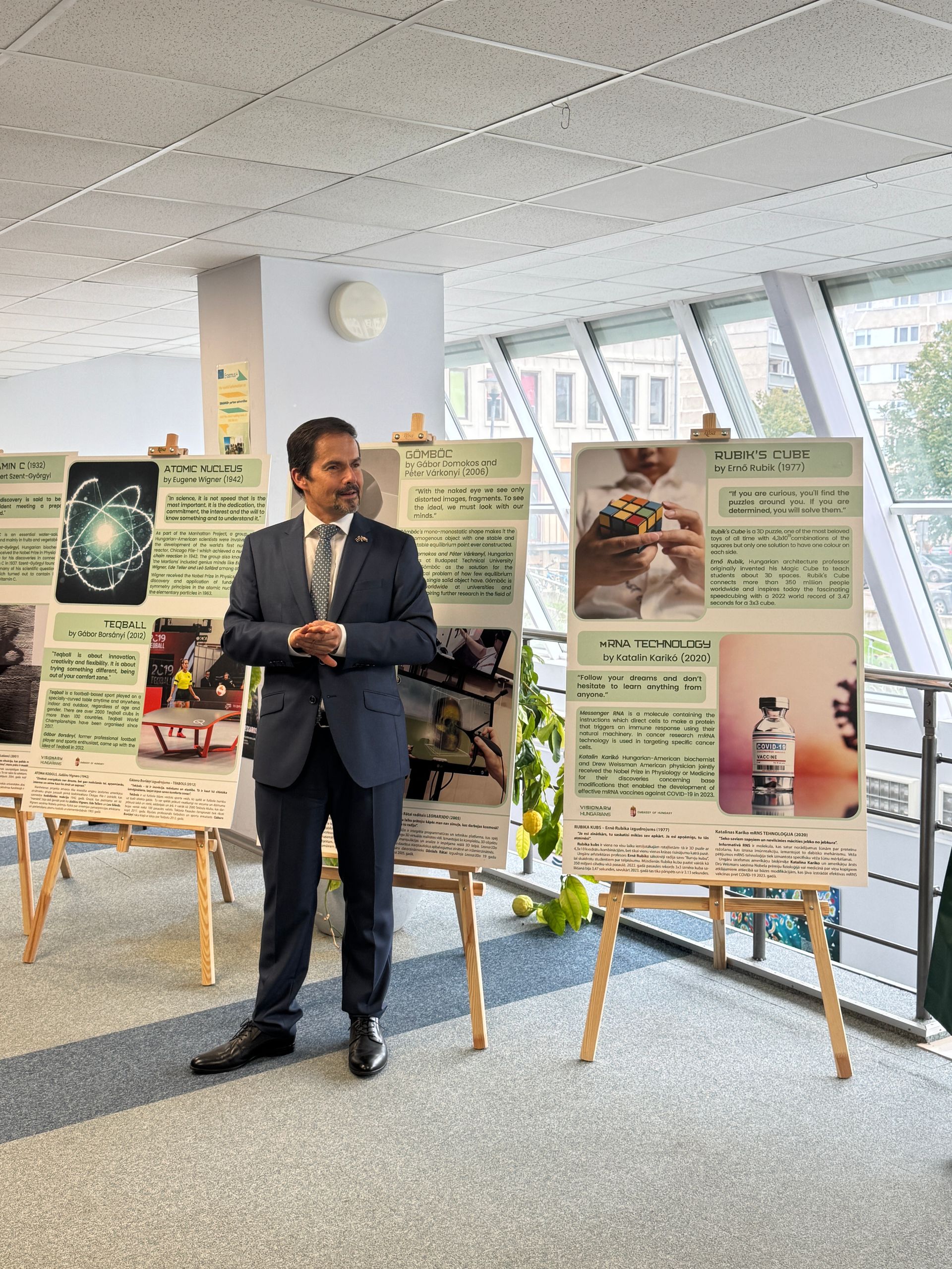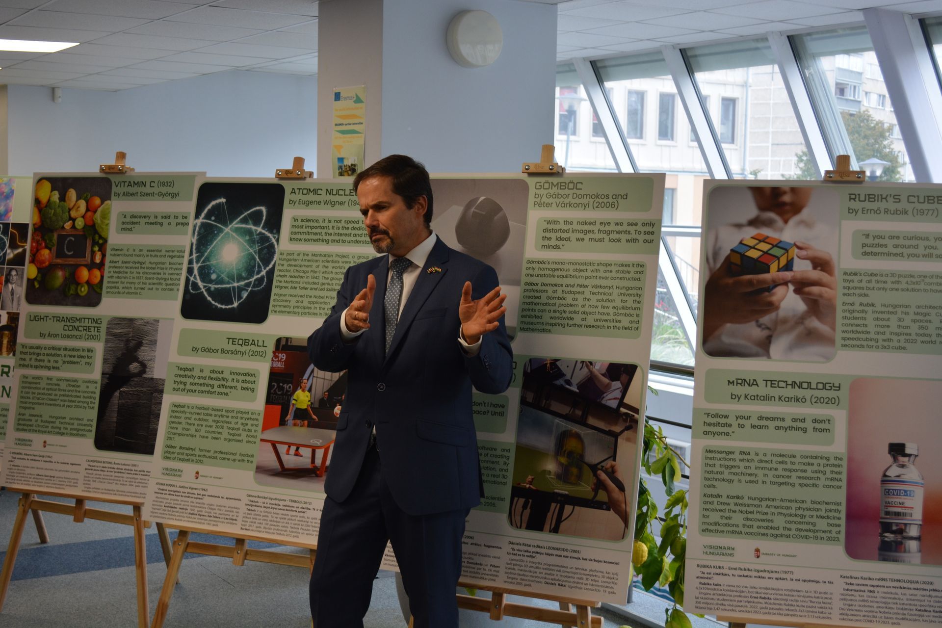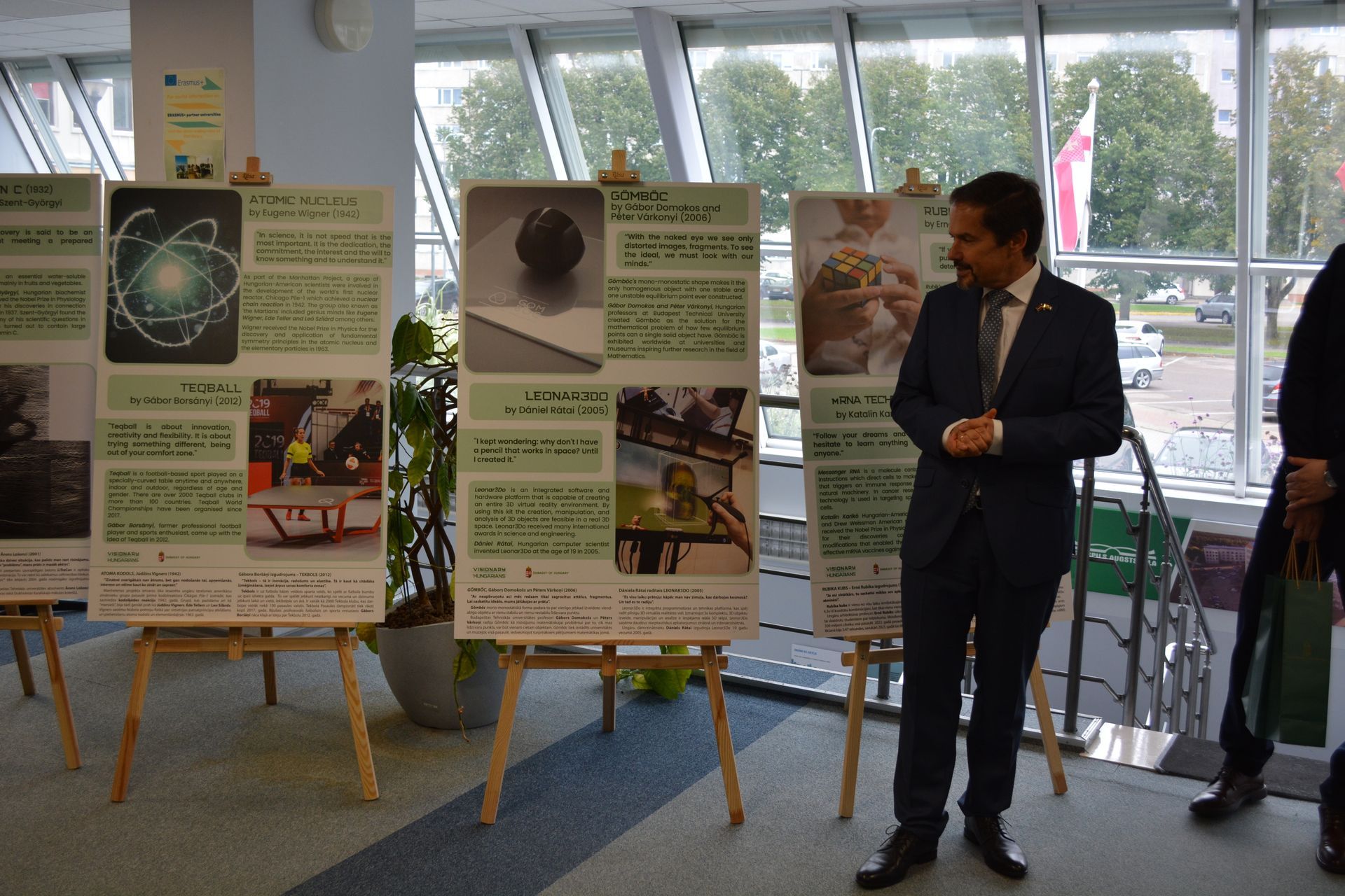 Vizītes laikā Ventspils Augstskolas bibliotēkā arīdzan tika atklāta izstāde, kas vēsta par ungāru zinātnieku izgudrojumiem un sasniegumiem. Visi ir laipni aicināti doties uz VeA bibliotēku, lai apskatītu tādus izgudrojumus un atklājumus kā caurspīdīgais betons, tekbols, kā arī mums visiem zināmais rubika kubs!