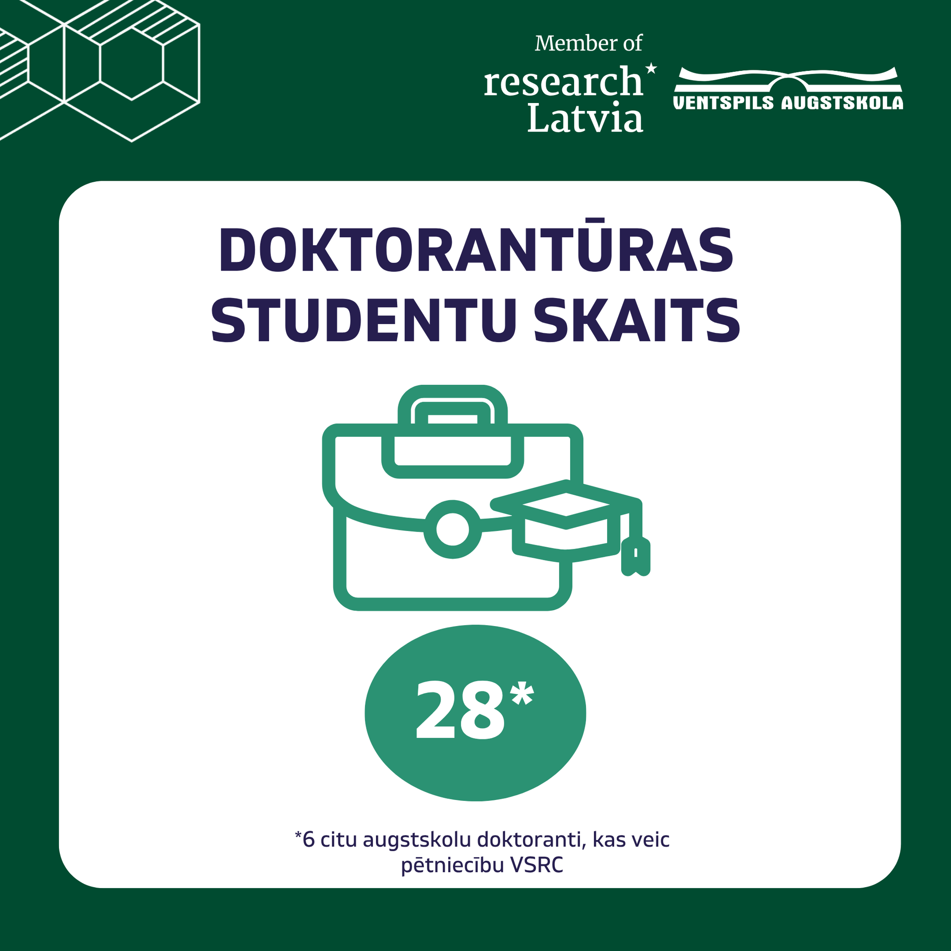 Ventspils Augstskolā šobrīd studē un veic pētniecību 22 doktoranti – 14 studenti iegūst zinātnes doktora grādu sociālajās zinātnēs, bet 8 studenti humanitārajās un mākslas zinātnēs. Ventspils Starptautiskais radioastronomijas centrs ir nozīmīgs pētniecības centrs, kas spēj piesaistīt citu augstskolu doktorantūrā studējošos un doktora grāda kandidātus, kas veic pētniecību dabaszinātņu jomā.
