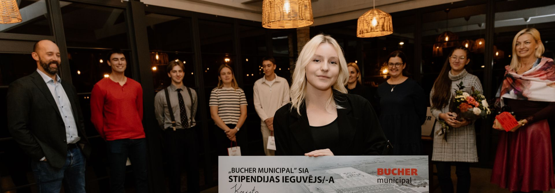 23. oktobrī tika aizvadīts piektais Bucher Municipal SIA stipendijas piešķiršanas pasākums.Pēc garām un interesantām sarunām ar kandidātiem tika noteikts uzvarētājs – Ventspils Augstskolas (VeA) “Biznesa vadība” 3. kursa studente Krista Ronberga, kura saņēma uzņēmumā izgatavotu balvu, stipendiju, kā arī iespēju doties pieredzes apmaiņā uzņēmumā. Sarunās ar studentiem piedalījās Bucher Municipal SIA ražotnes vadītājs Mikus Brakanskis un pārstāves Diāna Skore un Arta Jansone, kā arī VeA pārstāvji – Ekonomikas un pārvaldības fakultātes dekāne Dace Štefenberga, Studiju nodaļas pārstāve Lāsma Ašme un Studentu padomes pārstāve Karīna Ganiņa. Uz sarunām tika aicināti pieci studenti: Ēriks Marians Skukovskis – “Jaunuzņēmumu vadība” students, kurš sevi raksturo kā radošu un mierpilnu līderi ar inženiertehnisku domāšanu un spēcīgām komandas vadības prasmēm. Krista Ronberga – “Biznesa vadība” 3. kursa studente un Studentu padomes priekšsēdētāja. Stipendijai pieteicās, lai turpinātu attīstīt savas līderības un uzņēmējdarbības prasmes. Roberts Vicvagaris – “Biznesa vadība” 2. kursa students, kurš savu disciplīnu un mērķtiecību ir rūdījis nodarbojoties ar vieglatlētiku. Roberts vēlas pilnveidot savas profesionālās prasmes un veidotu karjeru uz izaugsmi vērstā uzņēmumā. Martina Bertāne – “Biznesa vadība” 3. kursa studente. Paralēli studijām, pārstāvējusi Latvijas basketbola izlasi Nāciju līgas turnīros. Nākotnē vēlas padziļināti apgūt grāmatvedību un finanšu plānošanu. Timurs Kiseļčuks – “Jaunuzņēmumu vadība” 2. kursa students un jaunuzņēmuma “Cura AI” līdzdibinātājs. Pieteicās stipendijai, lai turpinātu attīstīt savas zināšanas uzņēmējdarbībā un mākslīgā intelekta risinājumu izveidē. “Visi kandidāti bija ļoti spēcīgi,” uzsver Mikus Brakanskis. “Mūsu uzņēmumā ir vairāki Ventspils Augstskolas absolventi, mums ir svarīgi dot atpakaļ augstskolai, kurā paši esam mācījušies. Vēlamies palīdzēt jauniešiem jau studiju laikā iepazīt darba vidi un iegūt praktisku pieredzi. Ja students pēc stipendijas saņemšanas un prakses uzņēmumā nolemj turpināt darbu pie mums, mēs to uzskatām par lielisku rezultātu,” Mikus piebilst. “Kā vadītājam, gala lēmuma pieņemšana nebija grūta, taču tai priekšā bija daudz pārdomātu sarunu un diskusiju, un pasākuma norises vieta – restorāns Meisons – radīja omulīgu un brīvu atmosfēru.” Bucher Municipal pārstāve Diāna Skore pēc stipendiju pasniegšanas : “Sarunās studenti pastāstīja par sevi, savu ikdienu, sasniegumiem, mērķiem, hobijiem un citām lietām, kas viņus veido par tiem cilvēkiem, kurus šodien satikām, un cilvēkiem kurus nākotnē redzēsim darba tirgū. Sarunas ar studentiem bija ļoti interesantas, vērtīgas, domu raisošas, bet tai pat laikā ļoti dabiskas, un ritēja viegli. Pēc rūpīgām diskusijām žūrijas starpā, ņemot vērā tādus kritērijus, kā komunikācija, mērķtiecība, motivācija, sevis redzējums darba tirgū, par stipendijas ieguvēju šogad kļuva 3. kursa studente Krista Ronberga. Ļoti enerģiska, komunikabla un motivēta sasniegt nospraustos mērķus. Ar dabisku vēlmi un spējām vadīt un deleģēt, strādāt komandā, ļoti pozitīva un atvērta.” Krista Ronberga pēc stipendijas iegūšanas: “Esmu ļoti pateicīga par šo stipendiju. Tā ir apliecinājums, ka aktīvi darbojoties un sekmīgi mācoties var sasniegt iecerēto. Stipendijas iegūšana pierāda, ka tiecoties pēc mērķiem, tie ir sasniedzami, kā arī ieguldītais darbs un neatlaidība nes augļus. Saņemt stipendiju ir ne tikai materiāls atbalsts, bet arī uzticības apliecinājums. Plānoju šo iespēju izmantot, lai pilnveidotos un sasniegtu jaunas virsotnes.”