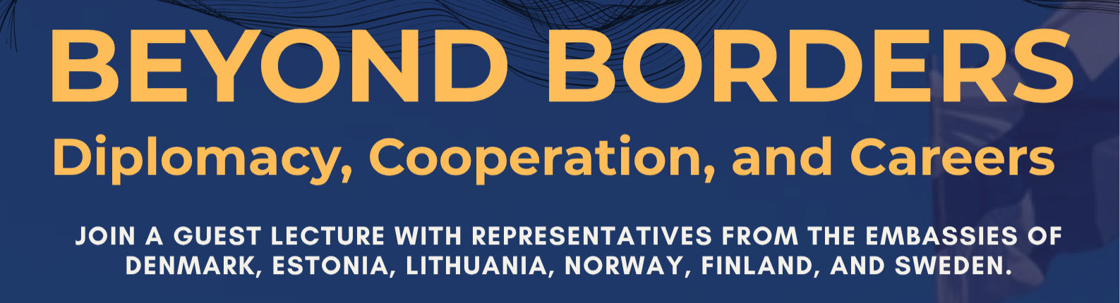24. aprīlī Ventspils Augstskolu informatīvā vizītē apmeklēs 6 vēstniecību pārstāvji, sniedzot vieslekciju "Pāri robežām: diplomātija, sadarbība un karjeras iespējas". Semināra laikā viesi dalīsies pieredzē par diplomātisko darbu, Ziemeļvalstu un Baltijas valstu sadarbību, ārlietām, kā arī karjeras iespējām diplomātiskajā un starptautisko attiecību sektorā. Aicināti piedalīties ir ikviens interesents, bet jo īpaši studenti, kam starptautiskās attiecības, ārpolitika un diplomātija, kā arī karjeras iespējas šajā nozarē, īpaši interesē. Norises laiks: piektdien, 24.04.2026., plkst. 13.00-15.00 Vieta: D104, Ventspils Augstskola Pasākuma darba valoda: angļu . Vieslekcijā piedalīsies: Vēstnieka vietnieks Dānijas Karalistes vēstniecībā – Alexander Lemche Vēstnieka vietnieks Igaunijas vēstniecībā – Siim Krispin Vēstnieka vietnieks Lietuvas vēstniecībā – Vilius Arlauskas Vēstnieka vietniece Norvēģijas vēstniecībā – Annlaug Rønneberg Vēstnieka vietnieks Somijas vēstniecībā – Eero Vento Vēstnieka vietnieks Zviedrijas Karalistes vēstniecībā – Hugo Qvinth